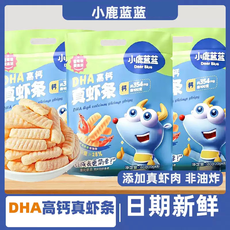 小鹿蓝蓝DHA高钙真虾条宝宝儿童零食品牌磨牙饼干0反式脂肪酸