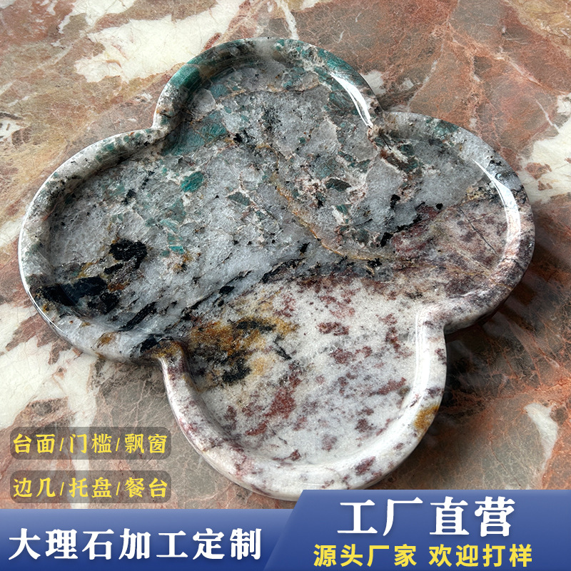 天然大理石の高級石材トレーろうそく缶のテーブルの上のお茶の数は貯蔵タンクの果物の皿の置物の皿を収納します。
