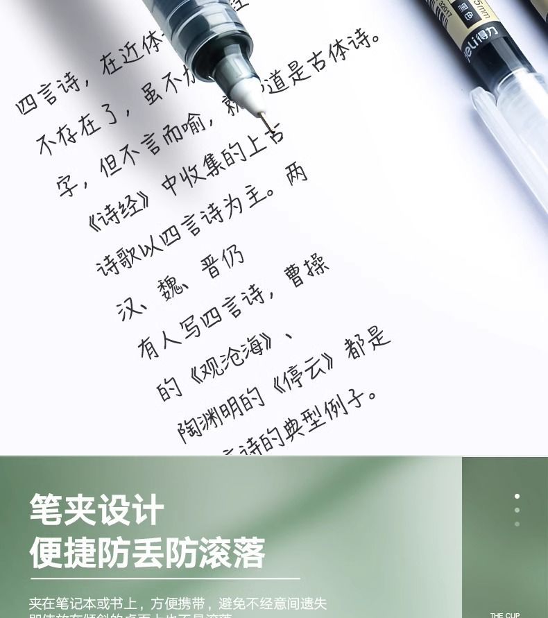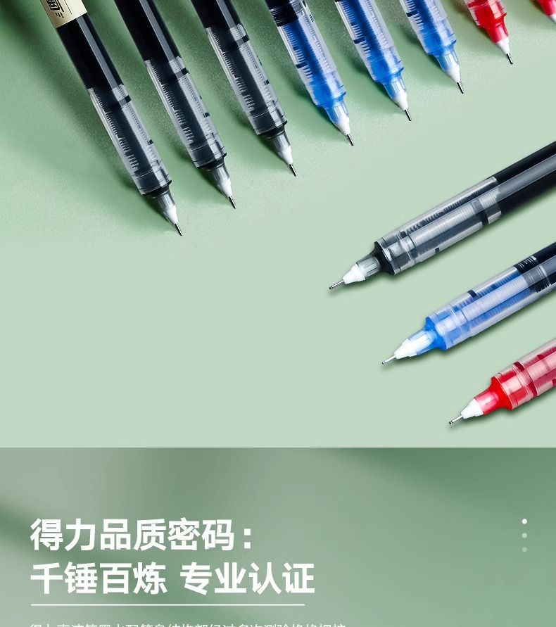 得力S856直液式走珠笔学生用中性笔速干0.5全针管黑色水性签字笔
