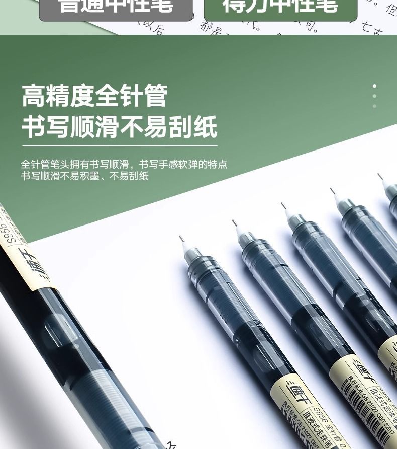有力s856直液式速乾ボールペン0.5黒ペンins高颜値針管ペンは滑らかな直液ペンを書くことができる