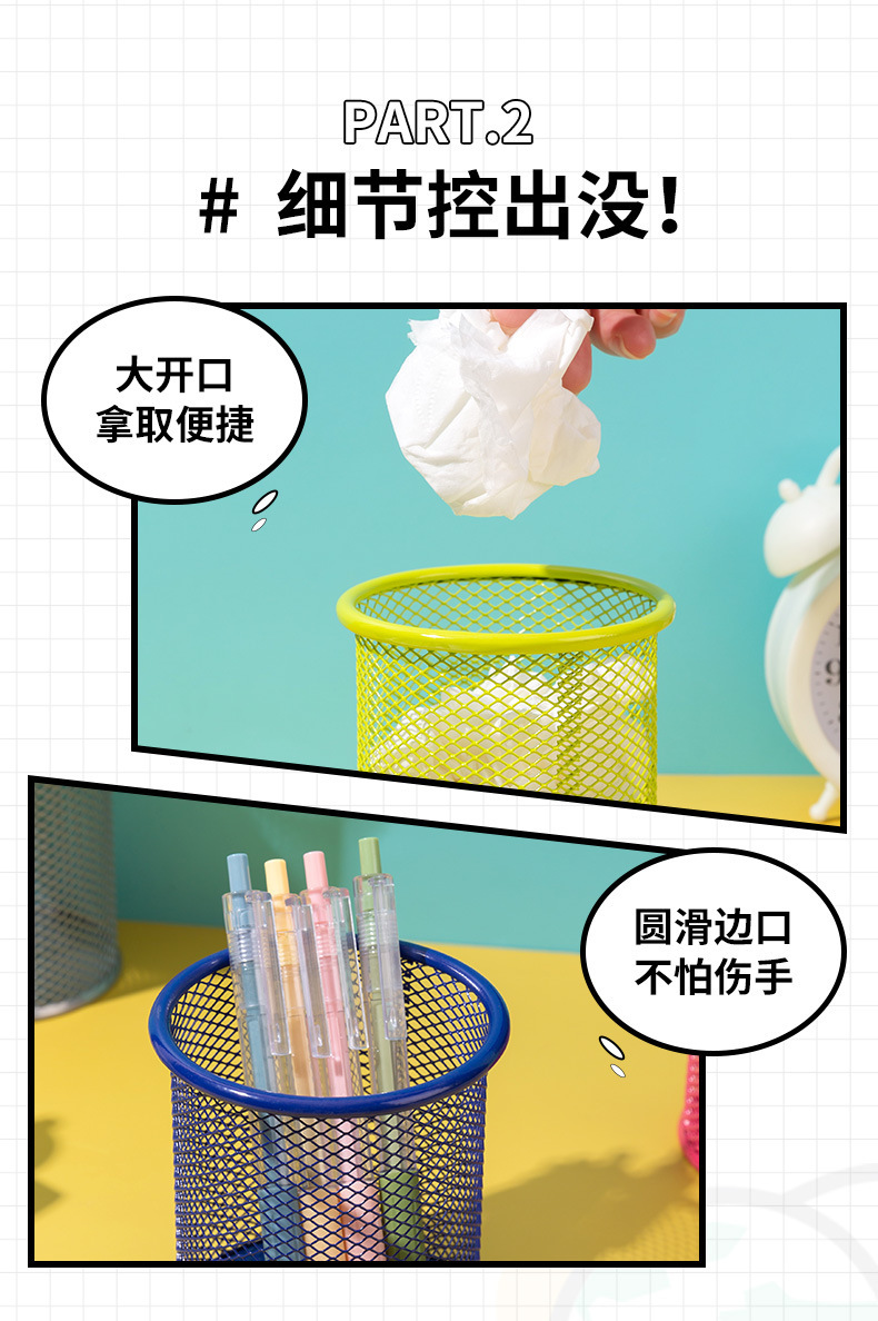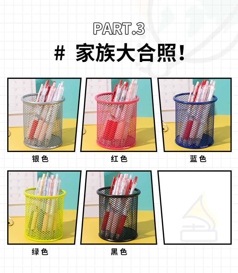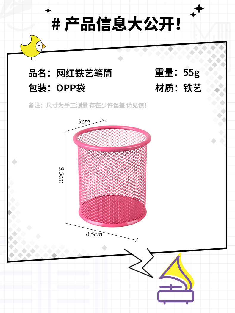 商品材质: 铁艺笔筒 圆形