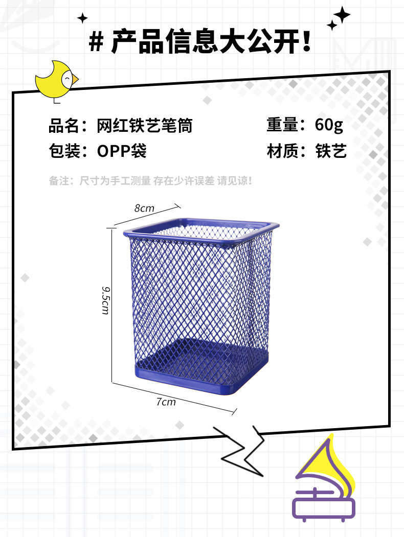 商品材质: 铁艺笔筒 方形