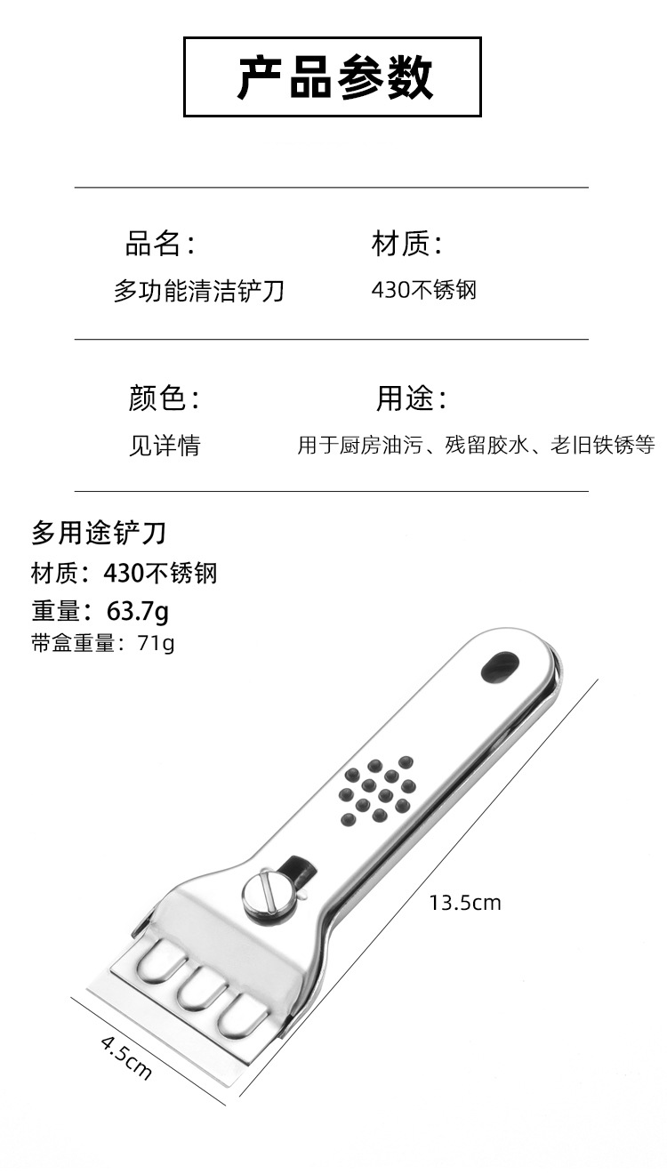 现货不锈钢多用清洁铲家务清洁冰箱除冰铲炉台除污铲油烟机去污铲