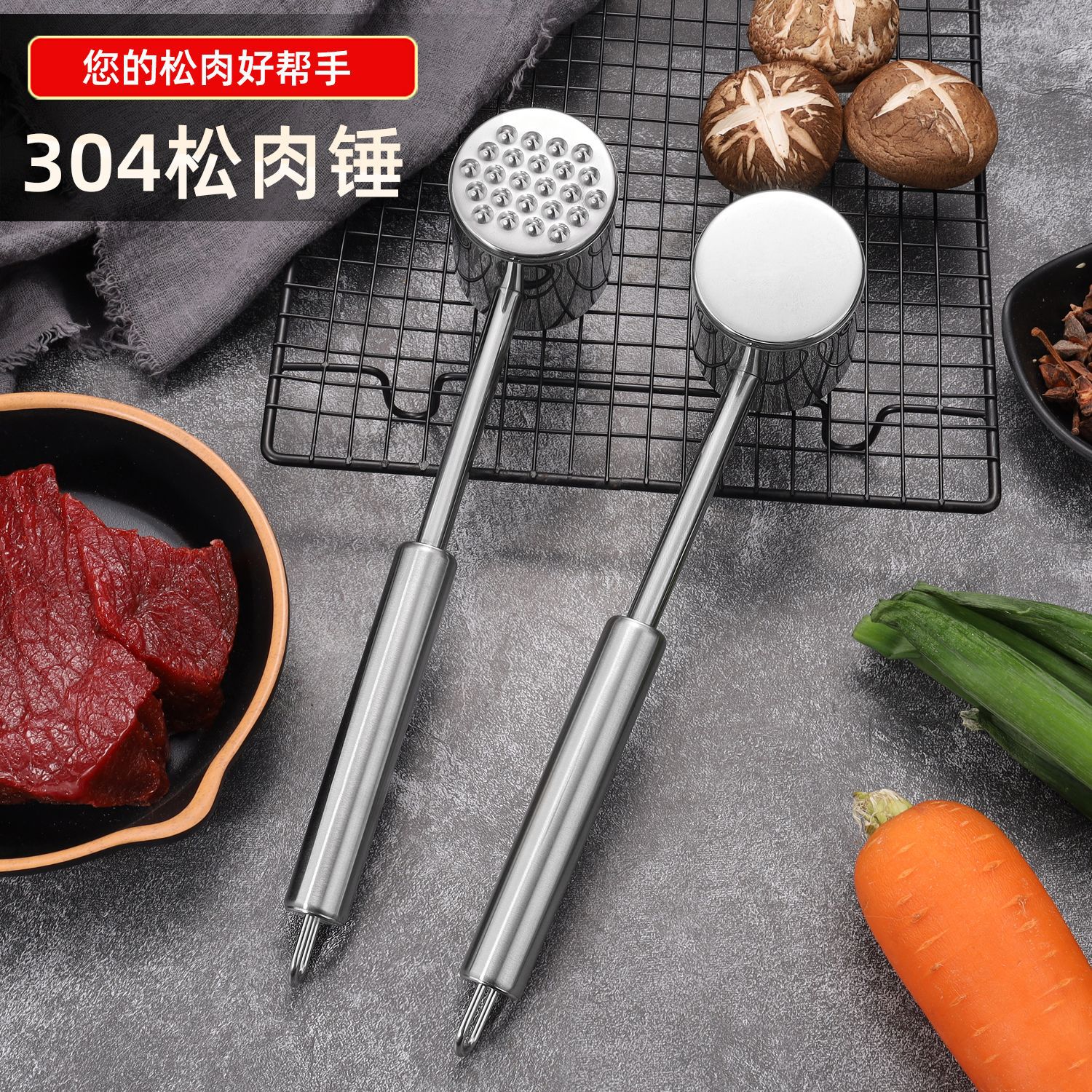 304ステンレスの松肉ハンマーの台所の家庭用の牛のハンマーの柔らかい肉器の両面は肉のハンマーの柔らかい肉の工具のハンマーの肉器を叩きます。