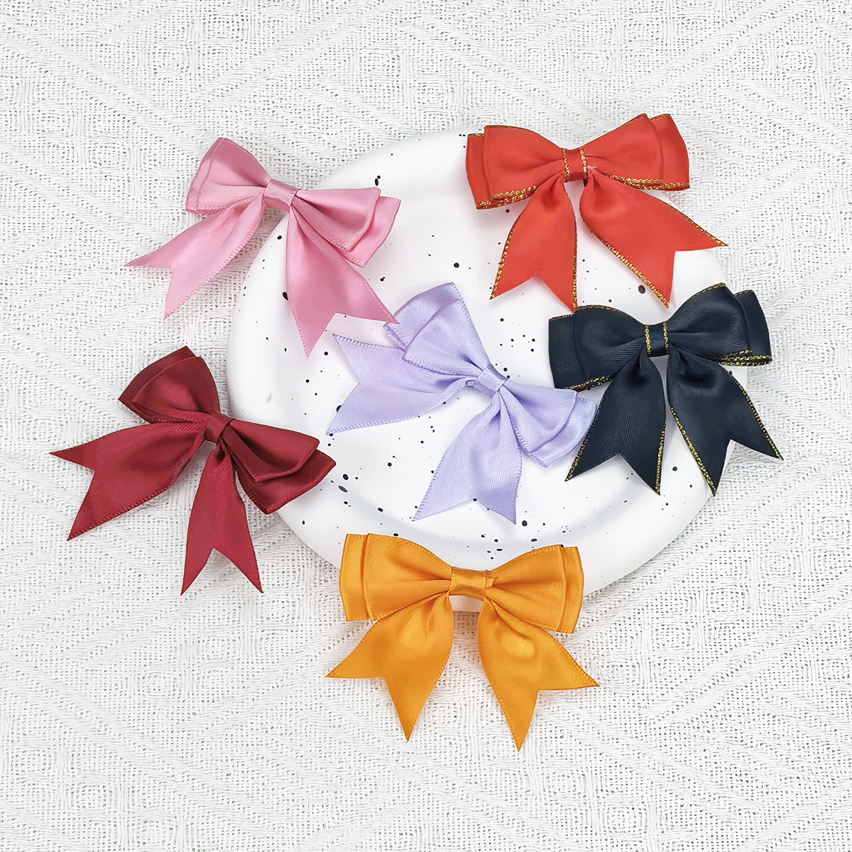 此链接上40个颜色常备现货库存,急单的客人下单前咨询客服,一般在48个小 时内会 发出。目前工厂超声波机器备有几十台,专业加工手工蝴蝶结近20年,可定制各种款式,加工各类手工活欢迎来样定制。本厂3MM的涤纶带采用三鼎的品质,产品均经过测试,耐皂洗的牢度,耐摩擦牢度均可达到4级及以上。测试标准为:ISO105-C10:2006,ISO102-X12:2001
