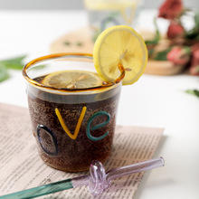クリエイティブins風衝突色グラスカラーコップ高温家高ホウ素シリコン高颜値ガラス酒コップ