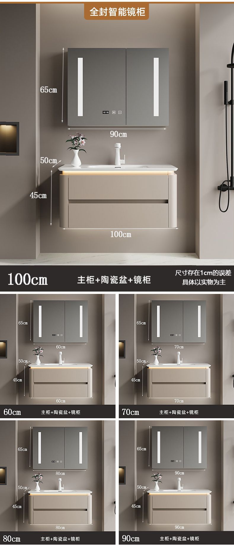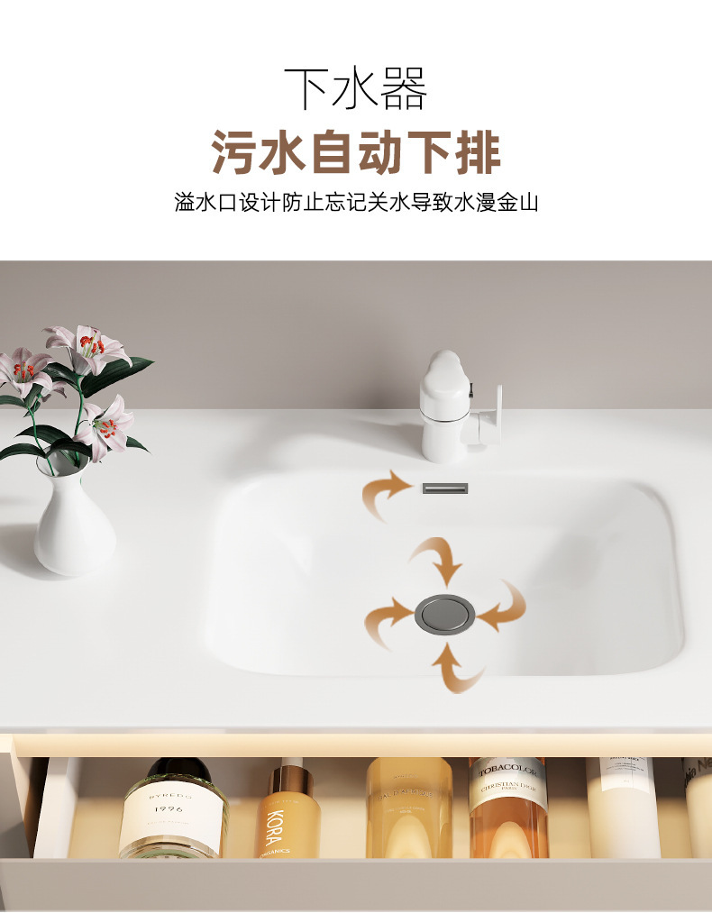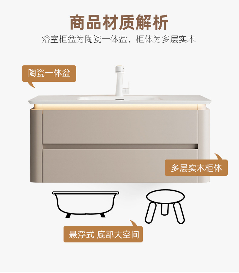 ホテルスタイルのバスルームキャビネット組み合わせ高級石セラミック洗面台バスルームシンク洗面台キャビネット