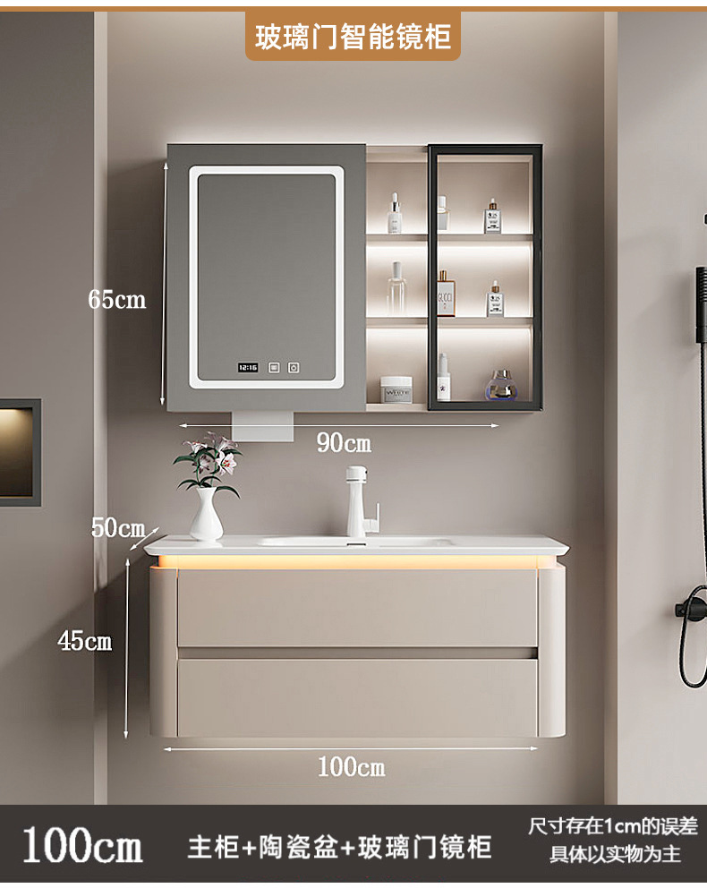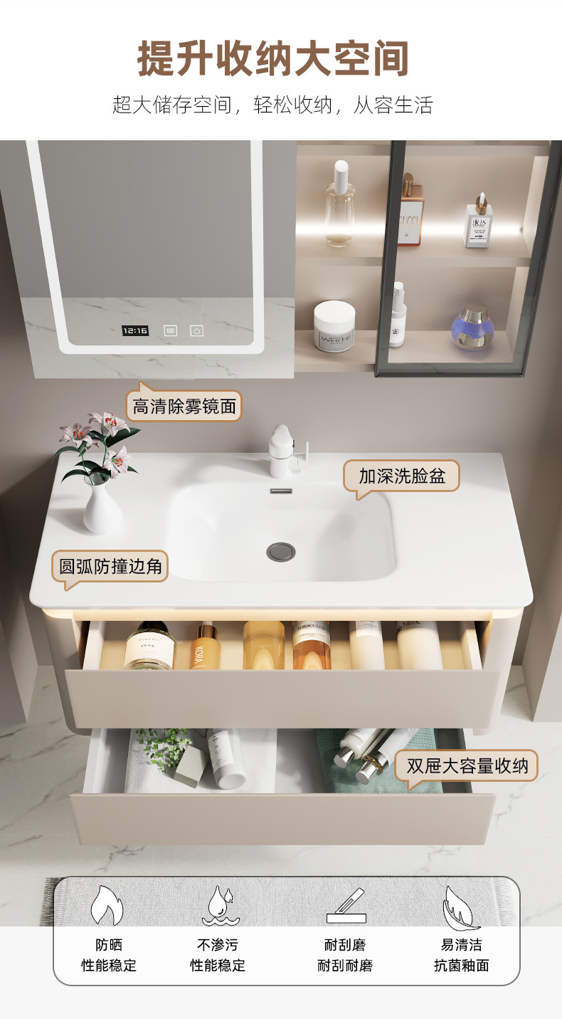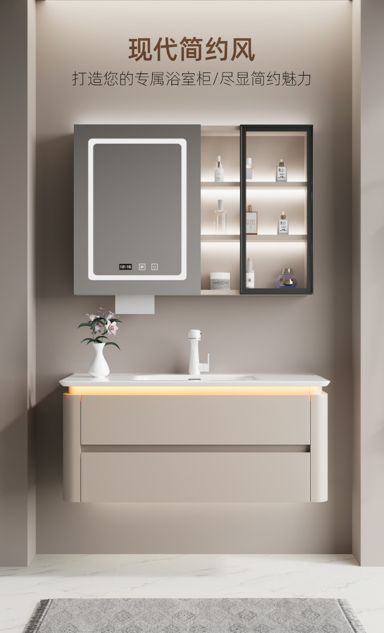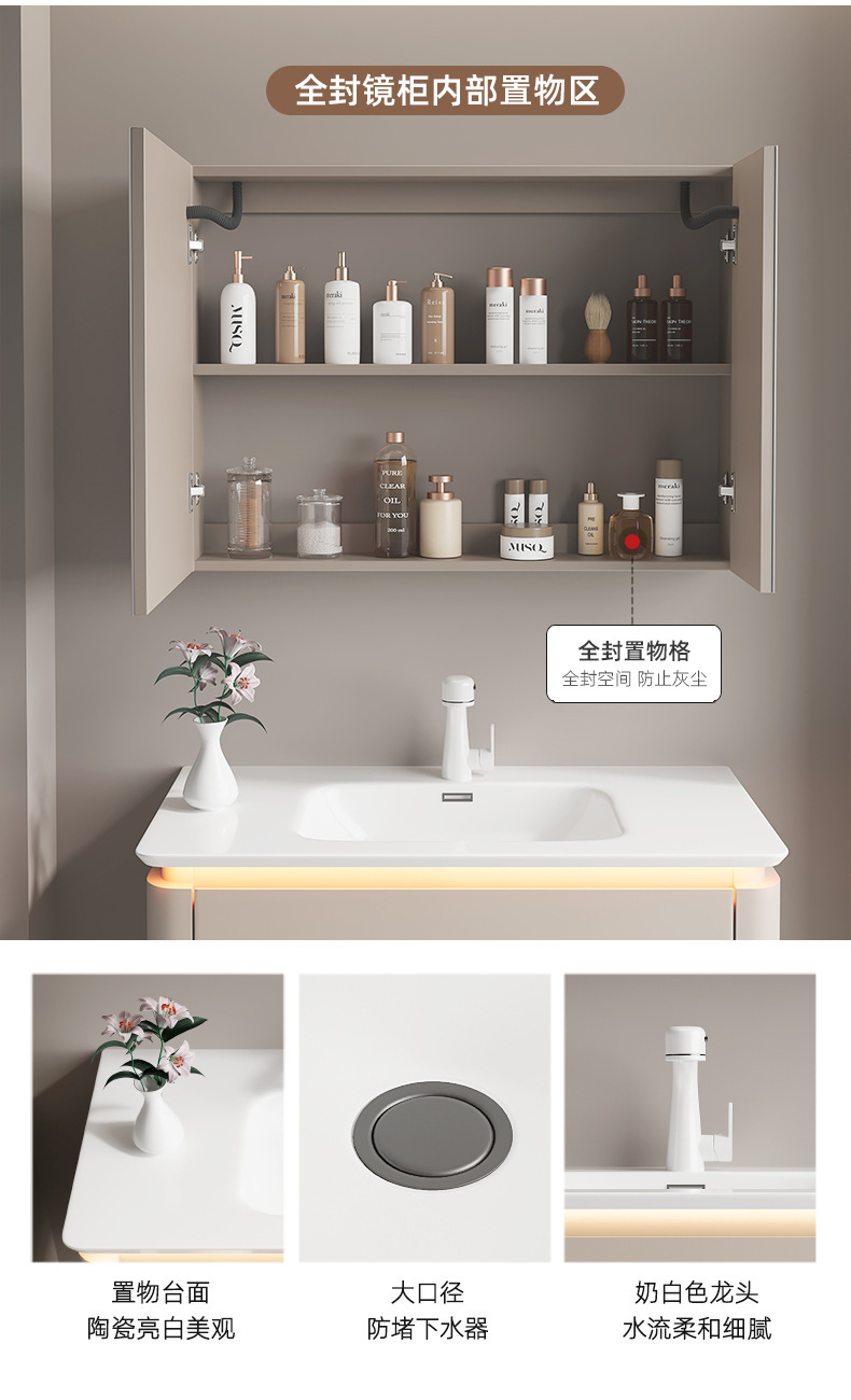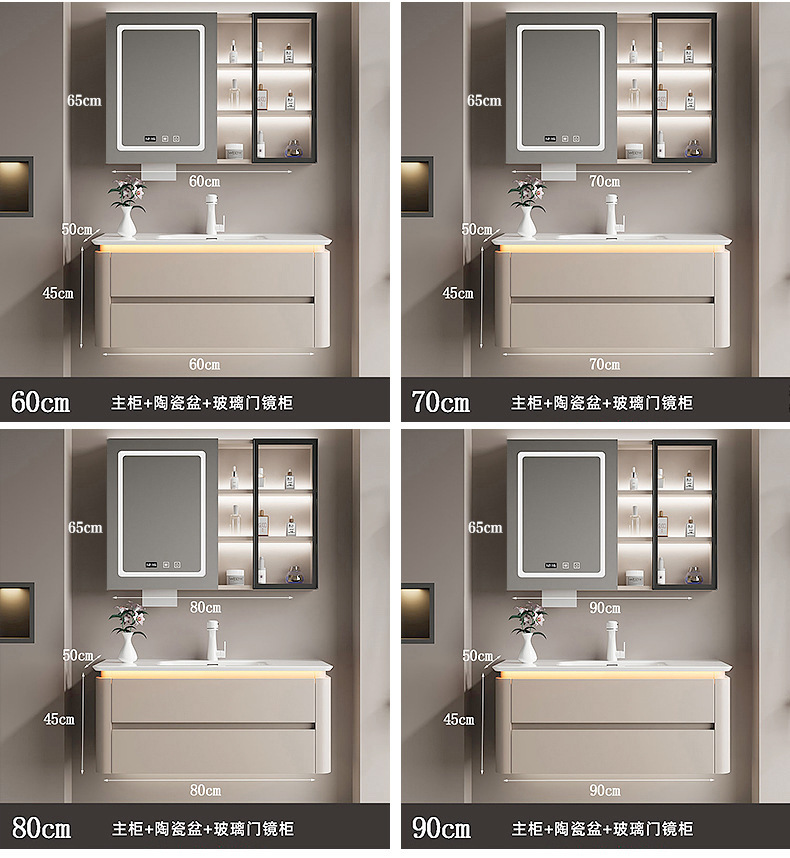 バスルームシンプルな多層無垢材バスルームキャビネット組み合わせロックボード柱洗面台洗面台洗面台キャビネット