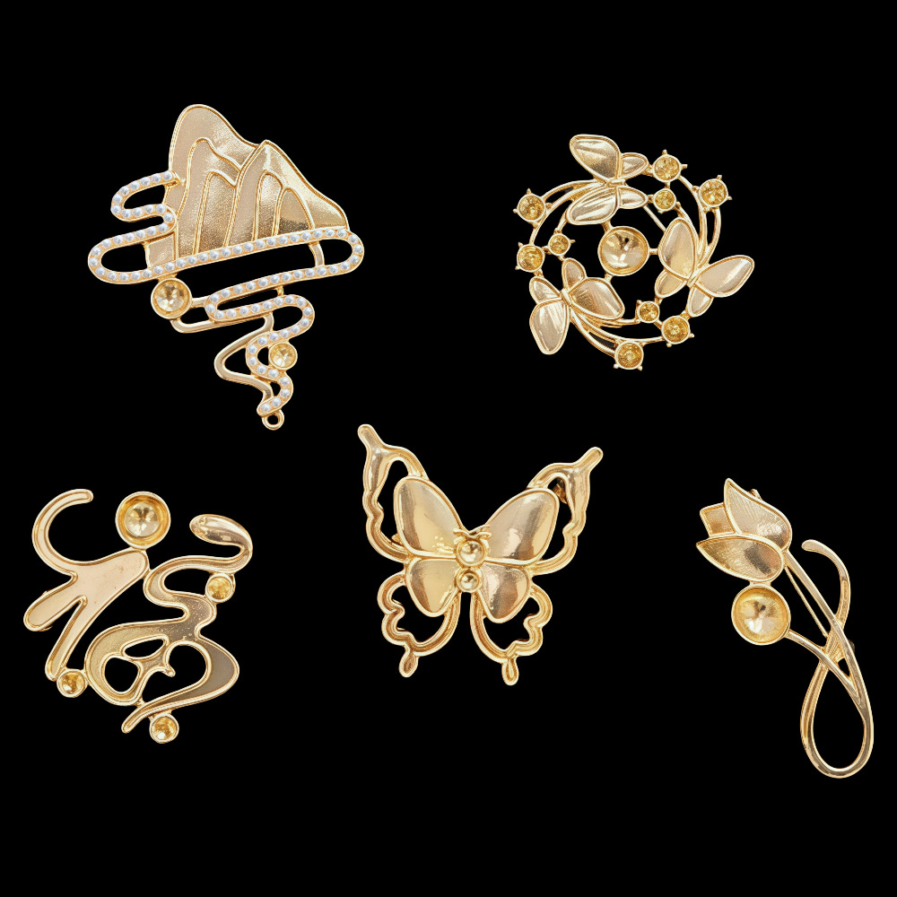 古风手工DIY新款材料 烧蓝点翠 螺钿胎底 蝴蝶胸针 服饰配饰