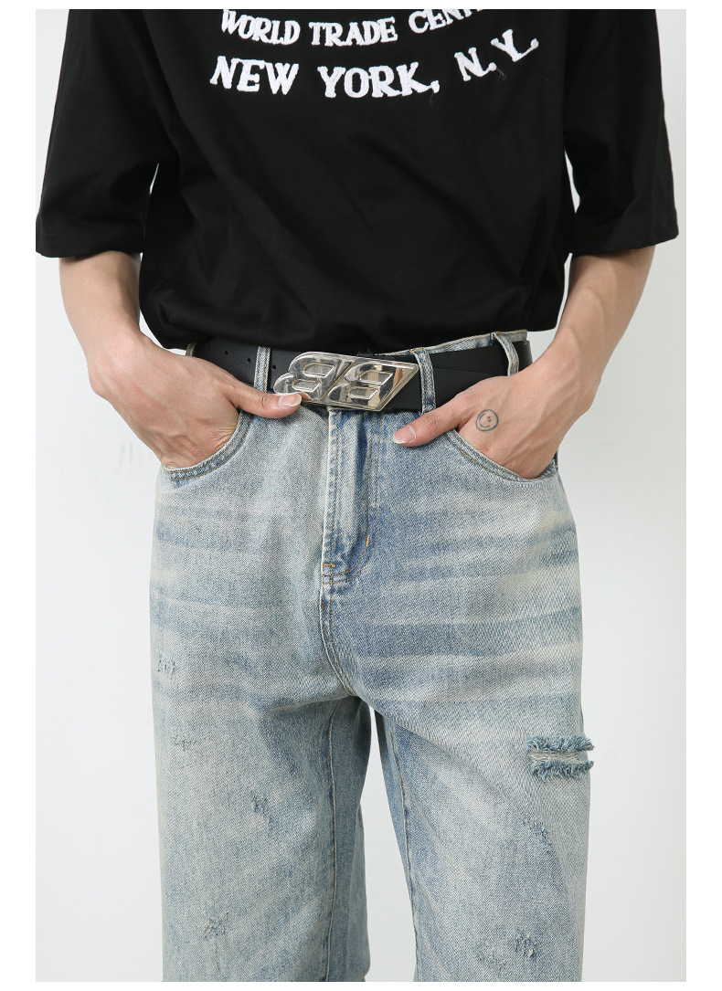 nirben | アメリカンバイブハイストリートハーフゴムウエストシミタージーンズメンズトレンディストレートカジュアルパンツ