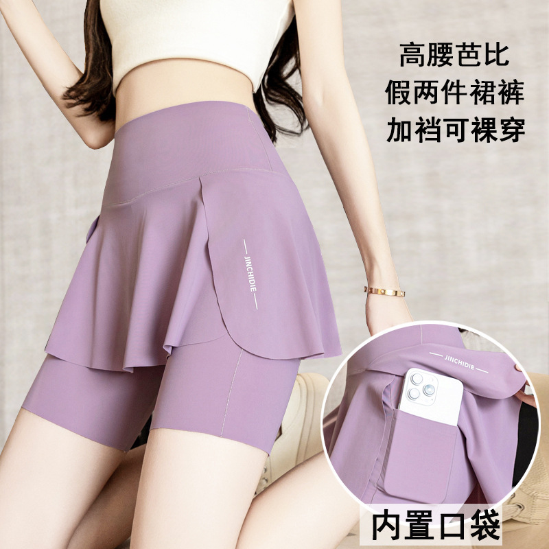 新作フェイクツーピーススカートパンツポケット付き九分丈シャークパンツ外履きヨガパンツレディース大きいサイズレギンス東南アジア越境
