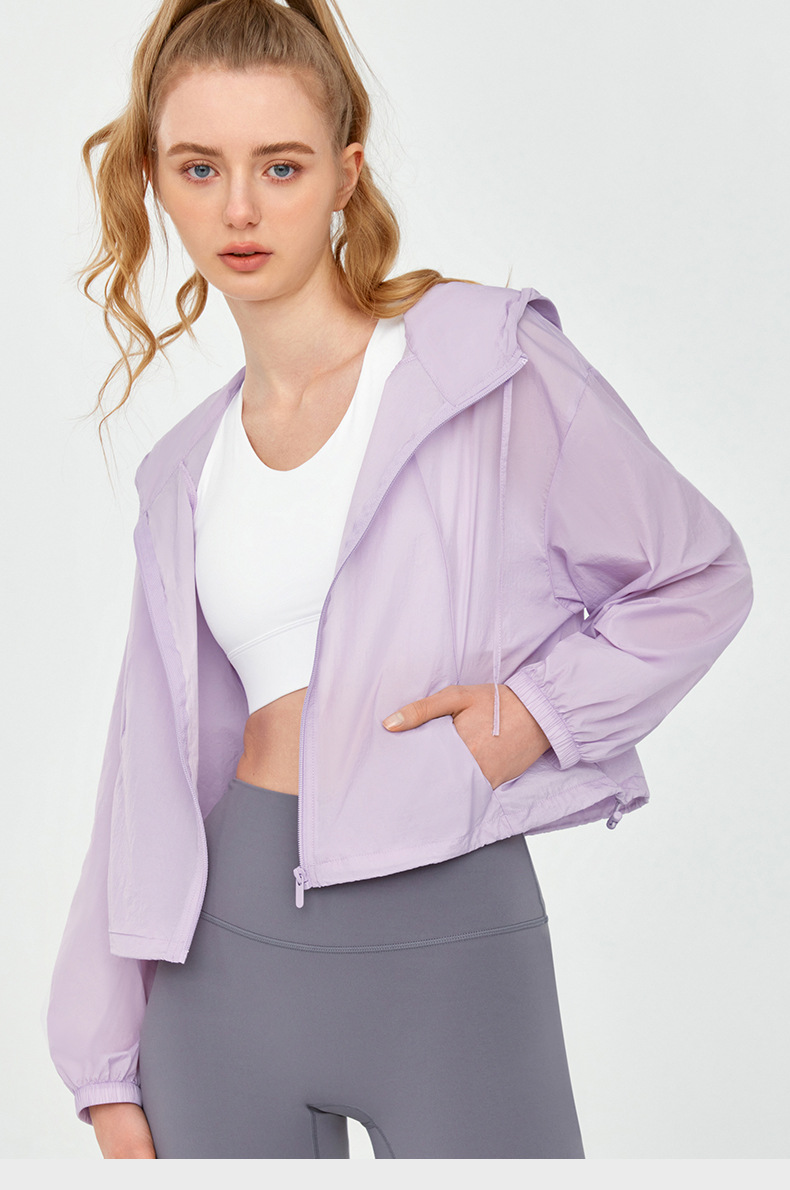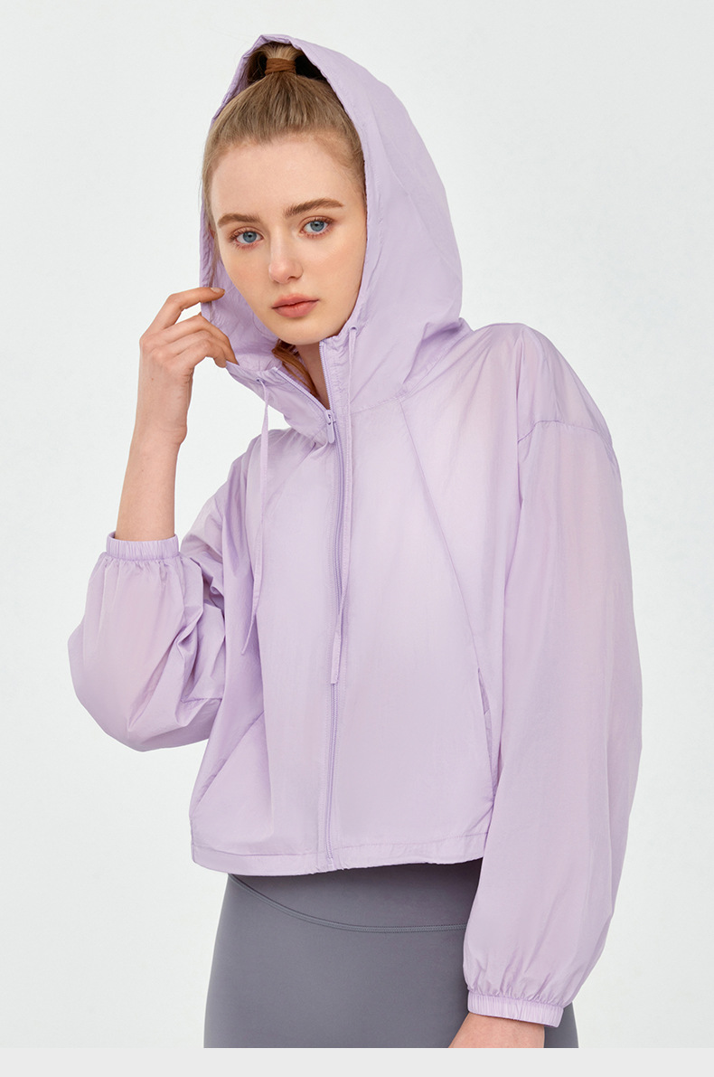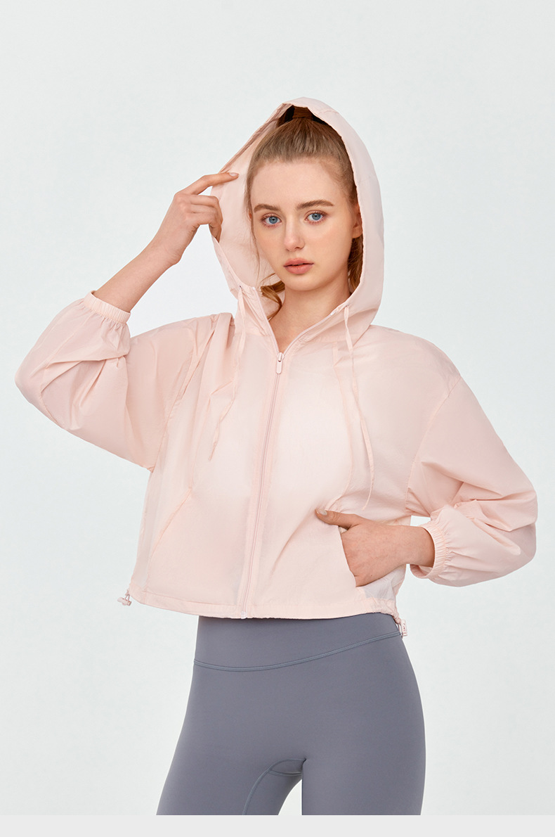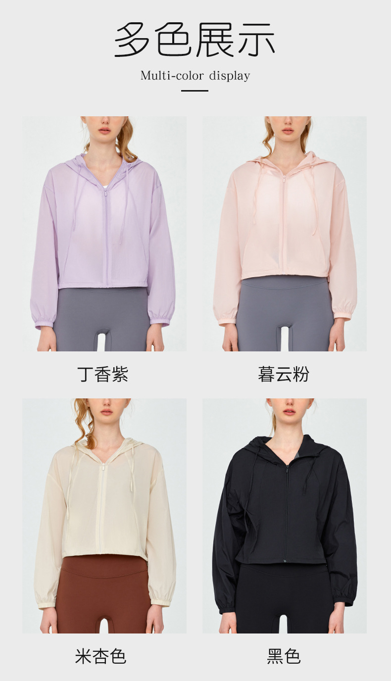 春夏の薄手のフード付きジャケット、女性用アウトドアスポーツ、涼しく通気性のあるヨガトップス、ゆったりとしたカジュアルなショートフィットネスウェア