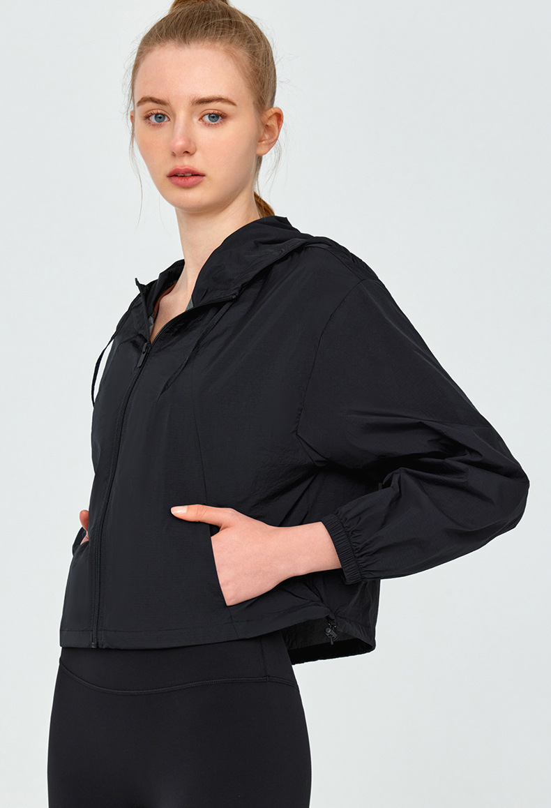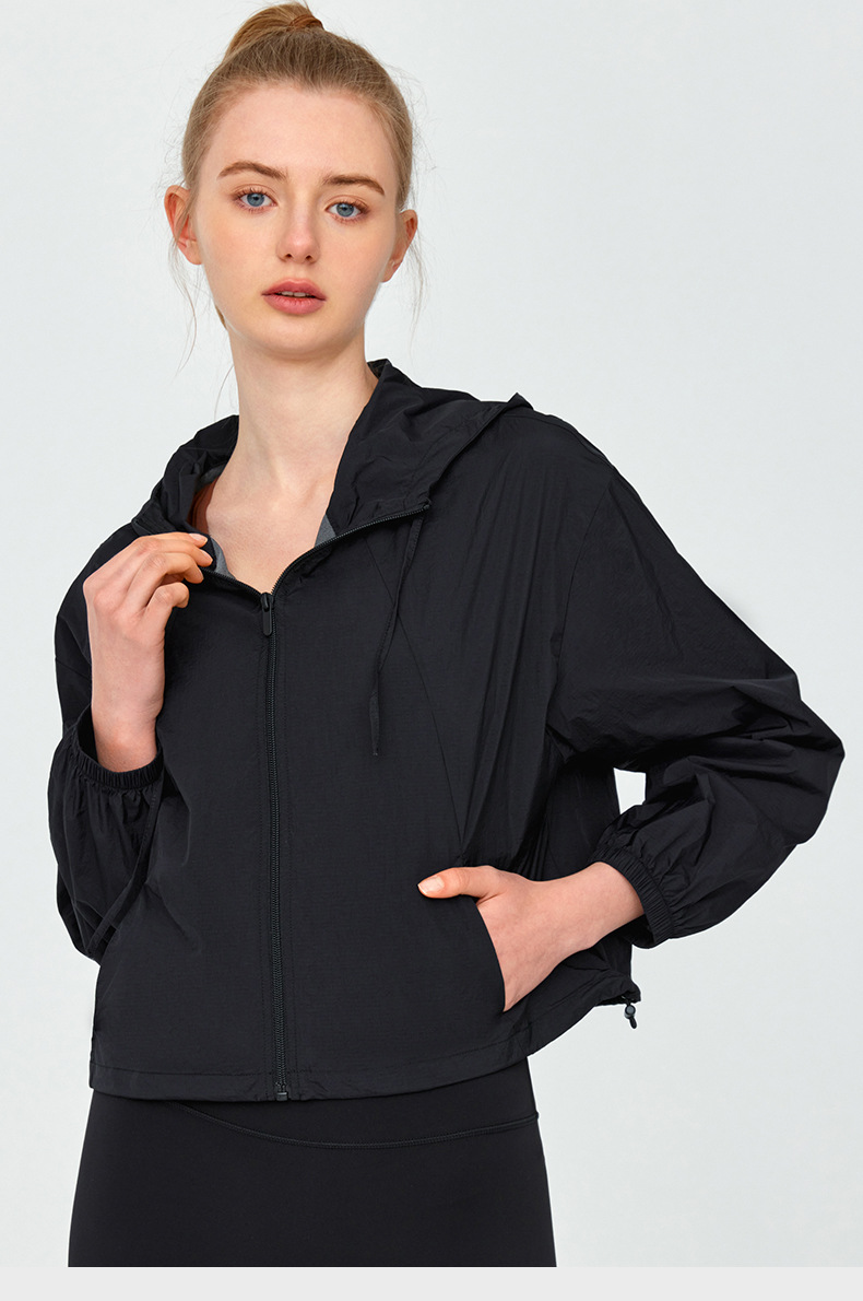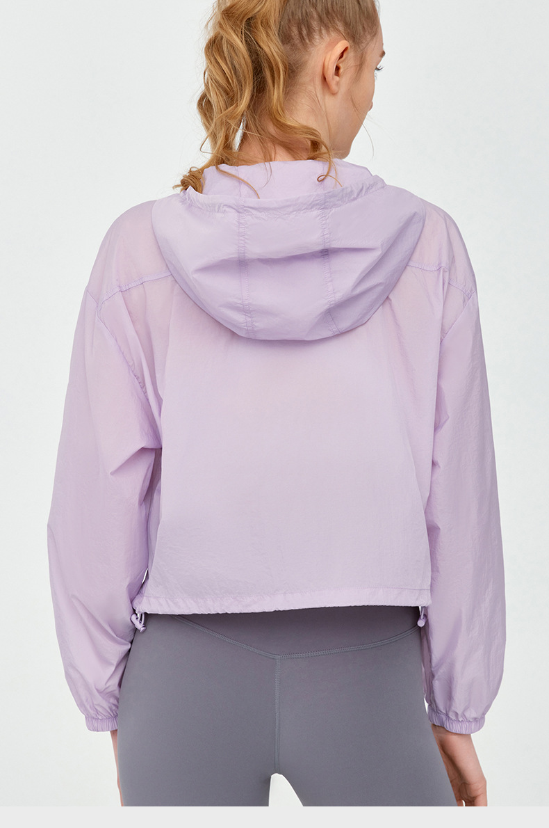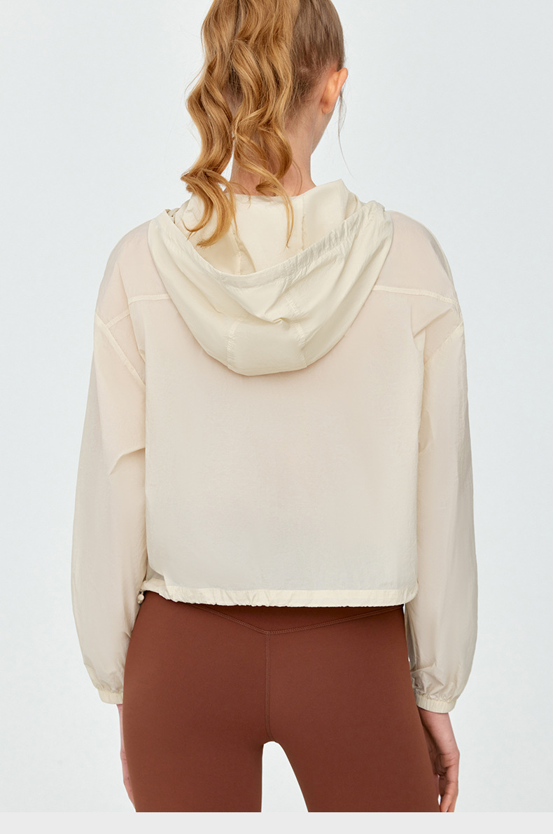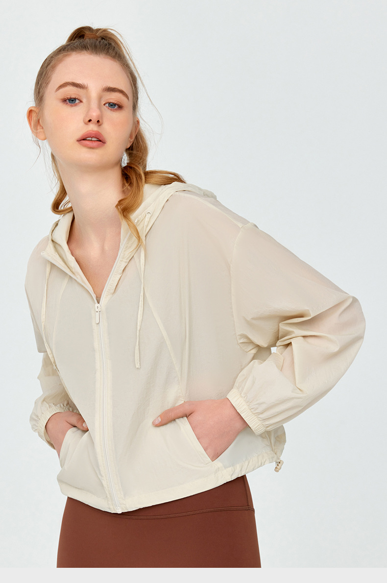 春夏の薄手のフード付きジャケット、女性用アウトドアスポーツ、涼しく通気性のあるヨガトップス、ゆったりとしたカジュアルなショートフィットネスウェア