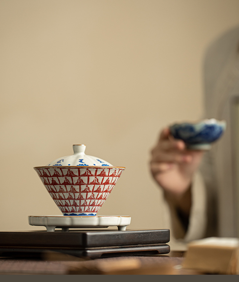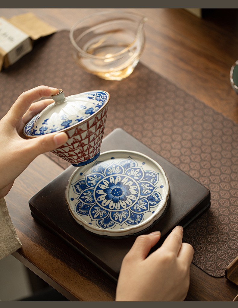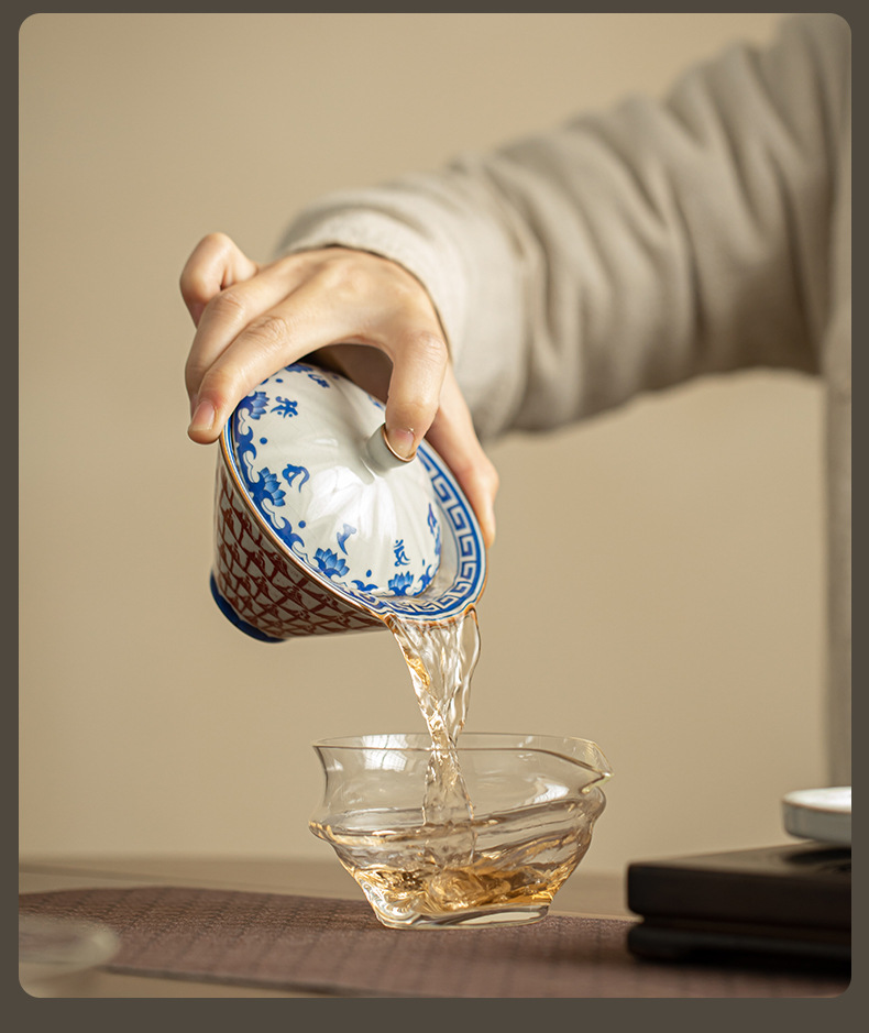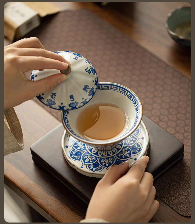 景徳鎮釉下彩三才青花蓋碗茶道具敬茶碗にお茶を入れます。