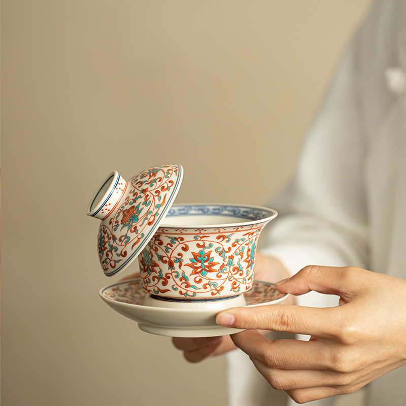 景徳鎮の粉彩は枝蓮の三才を巻いて碗をかぶせます。