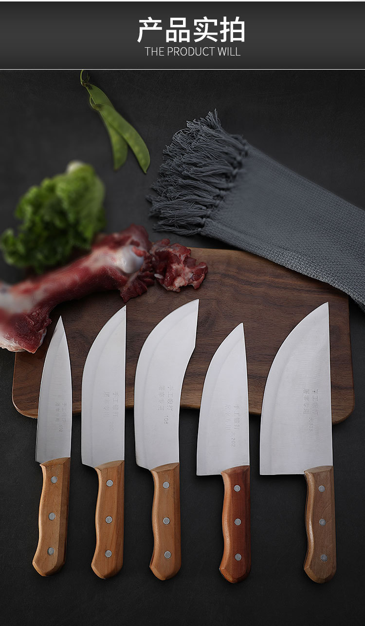 61豚肉ナイフキッチンナイフ包丁牛肉ナイフ木柄曲げナイフキッチン料理カッティングナイフクロムスチールナイフ