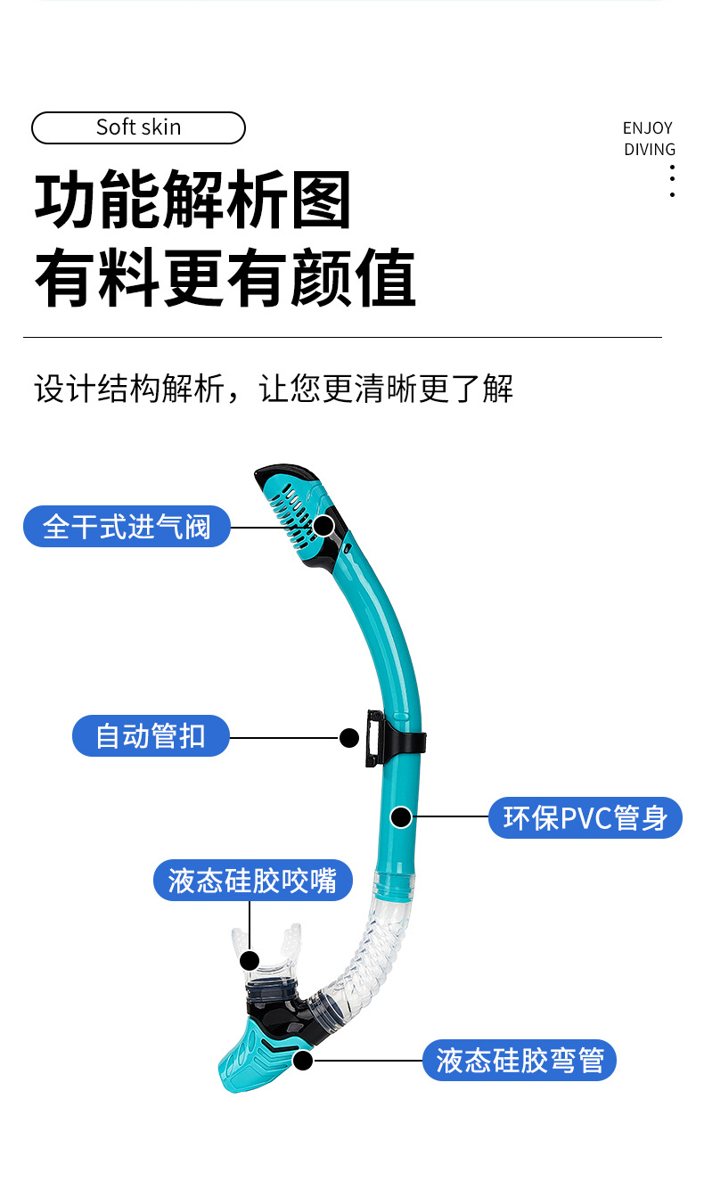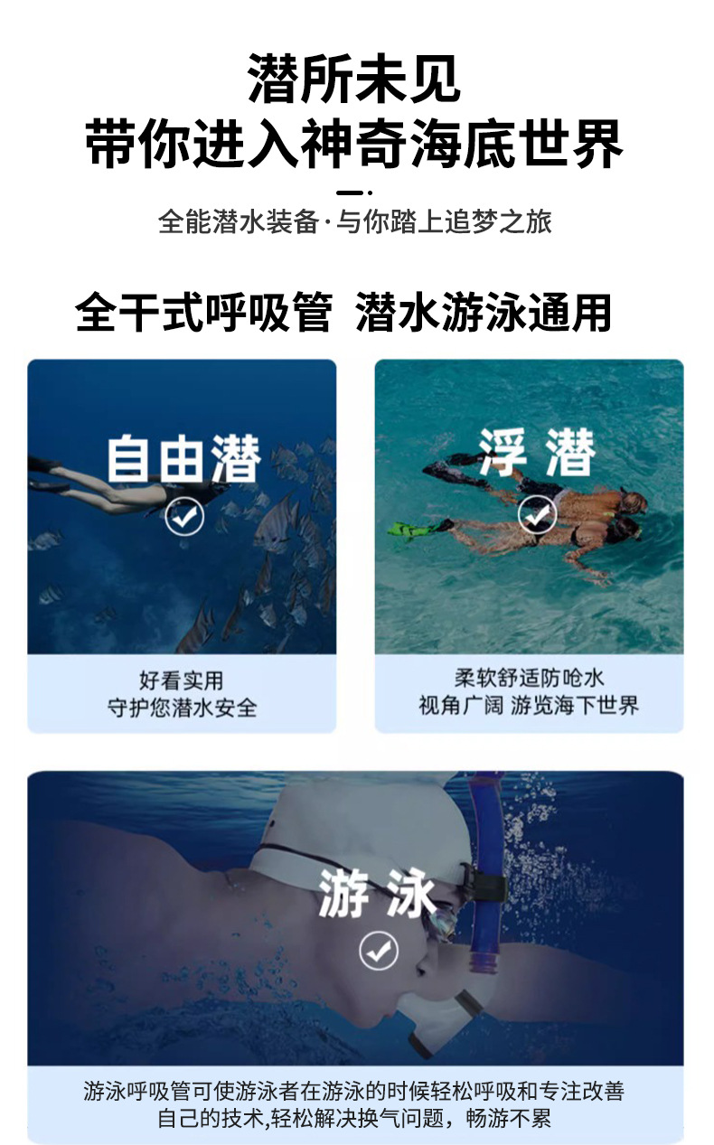 越境卸売 水泳専用呼吸チューブ 大人用 男女兼用 プロダイビング用品 フルドライタイプ