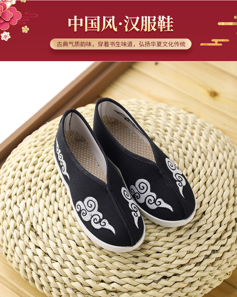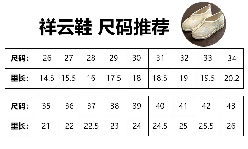 カラー 米白色祥雲刺繍靴は小さいほうが大きいです。,黒い祥雲の刺繍靴は小さいほうが大きいです。