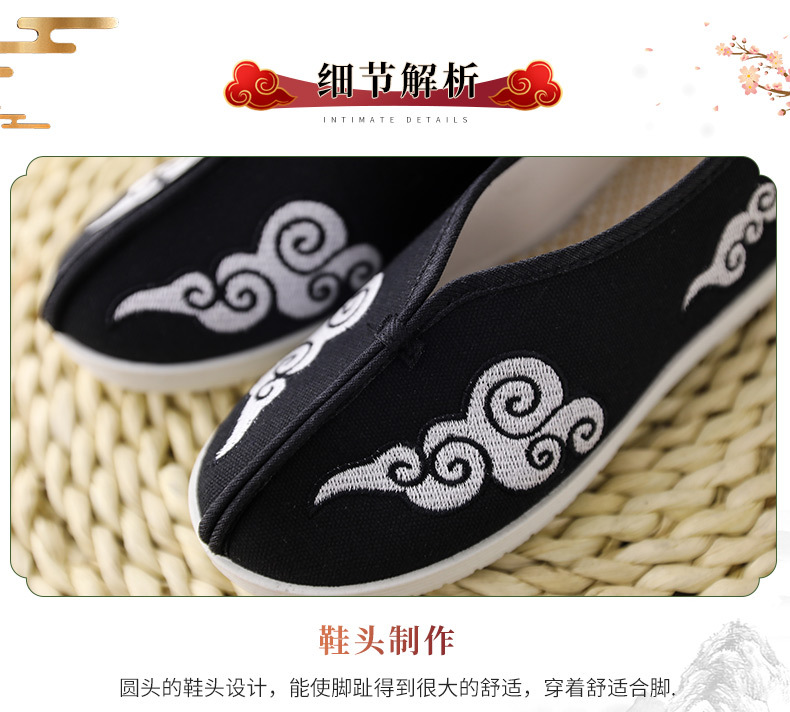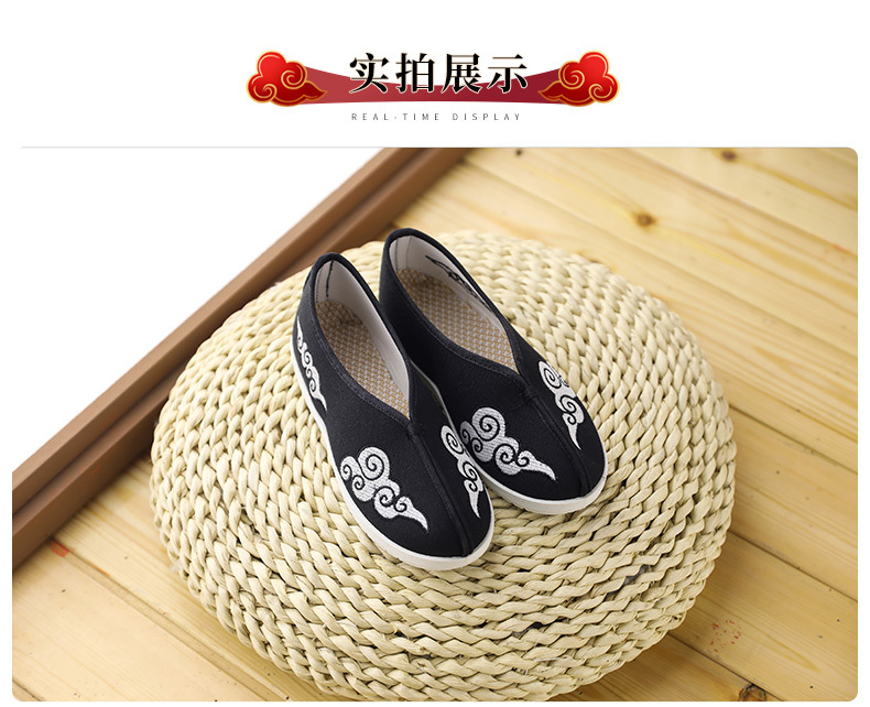 古い北京の子供の手作りの布靴の民族風の刺繍の靴の学生の時代の漢服は靴の中国風の男の子の靴を演出します。