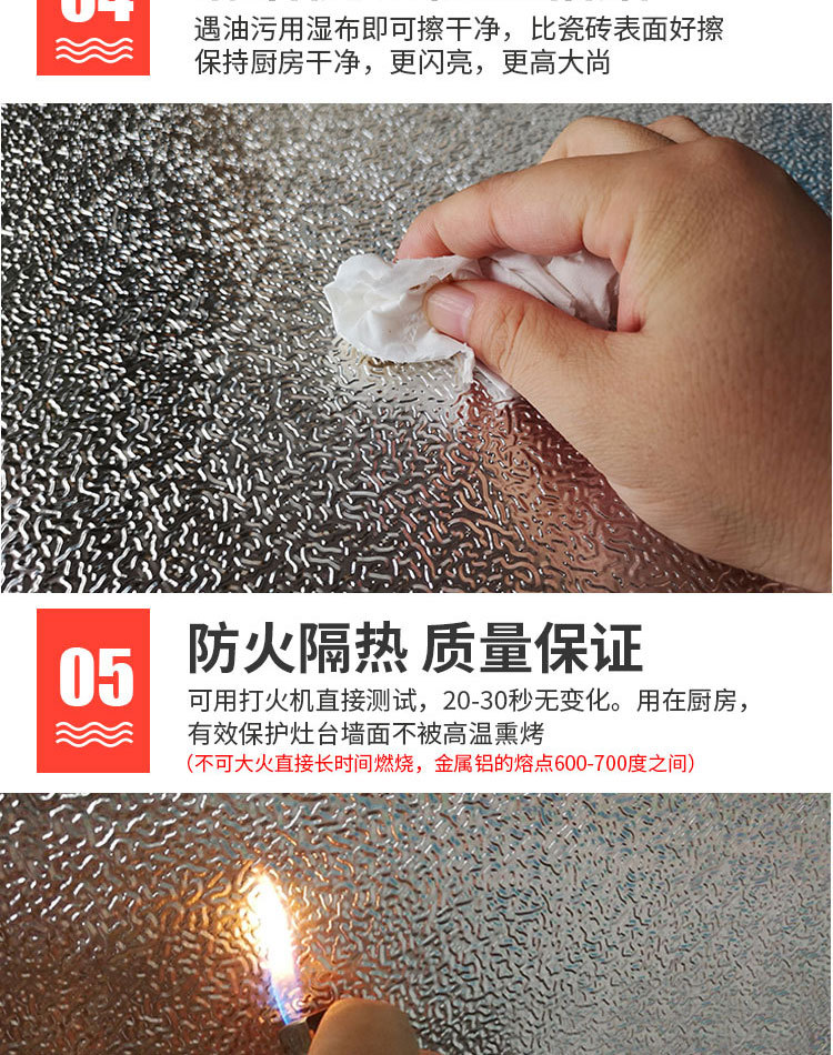 キッチン防火シール防水防油自己接着耐高温調理台難燃厚い壁にガスコンロのタイルを貼って貼ります。