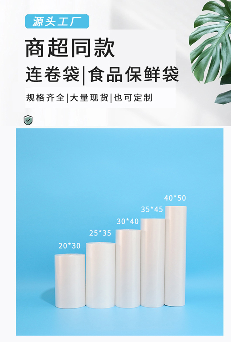 食品級家庭用鮮度保持袋スーパーの連続巻き袋の使い捨てプラスチック包装が厚くなっています。