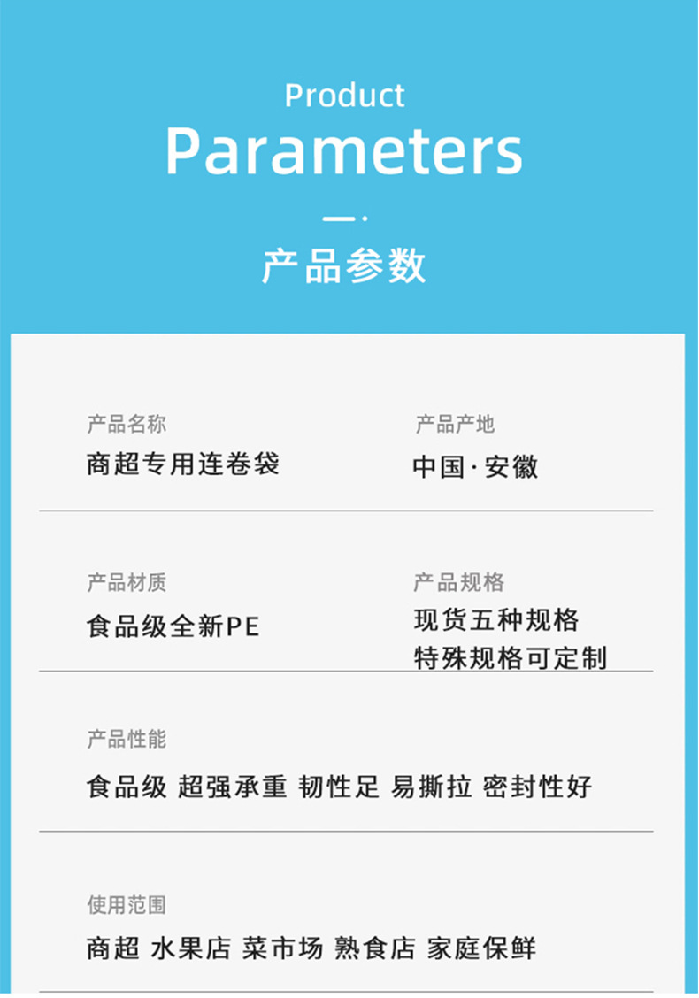 特大巻平ポケット特厚スーパー専用大中小袋点断式連巻袋pe連巻袋