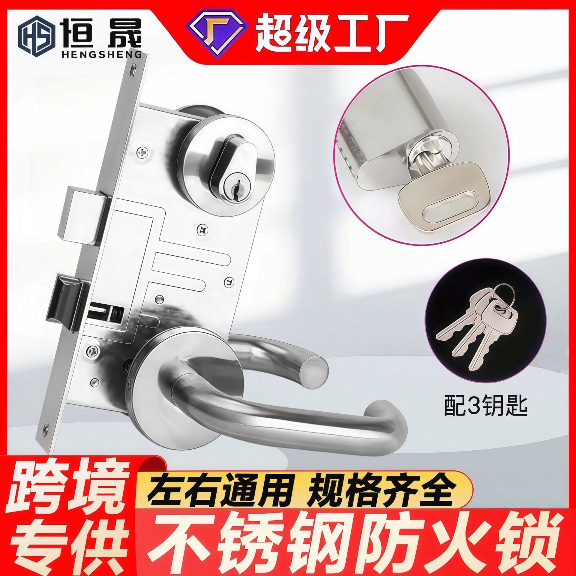 防火门锁304不锈钢逃生锁通用防火锁逃生推拉门防火锁安全通道锁