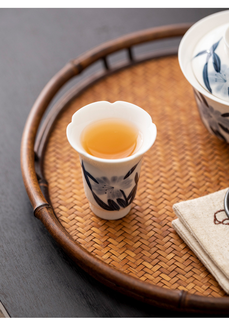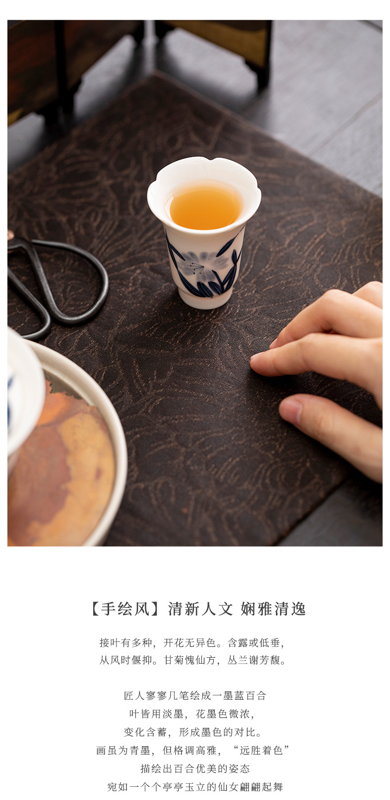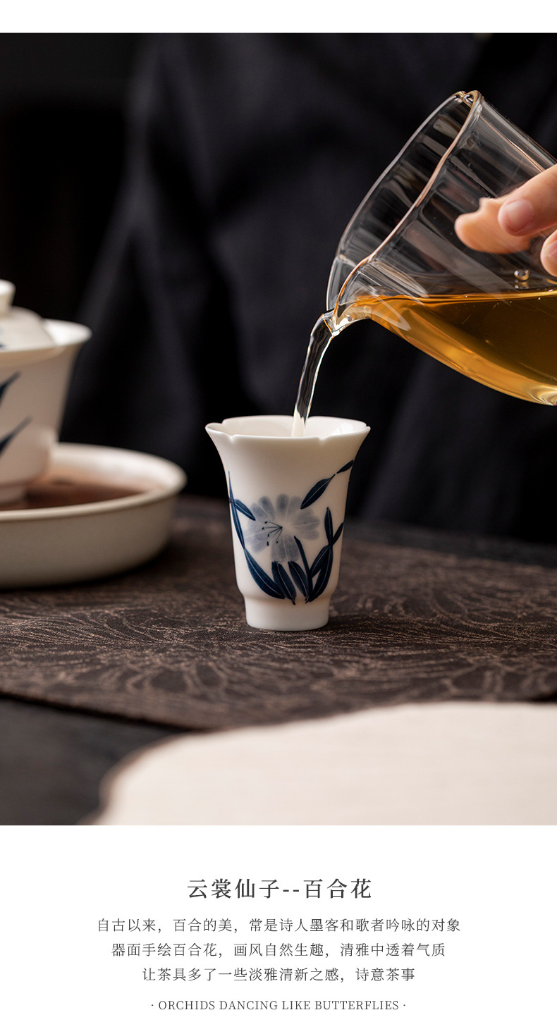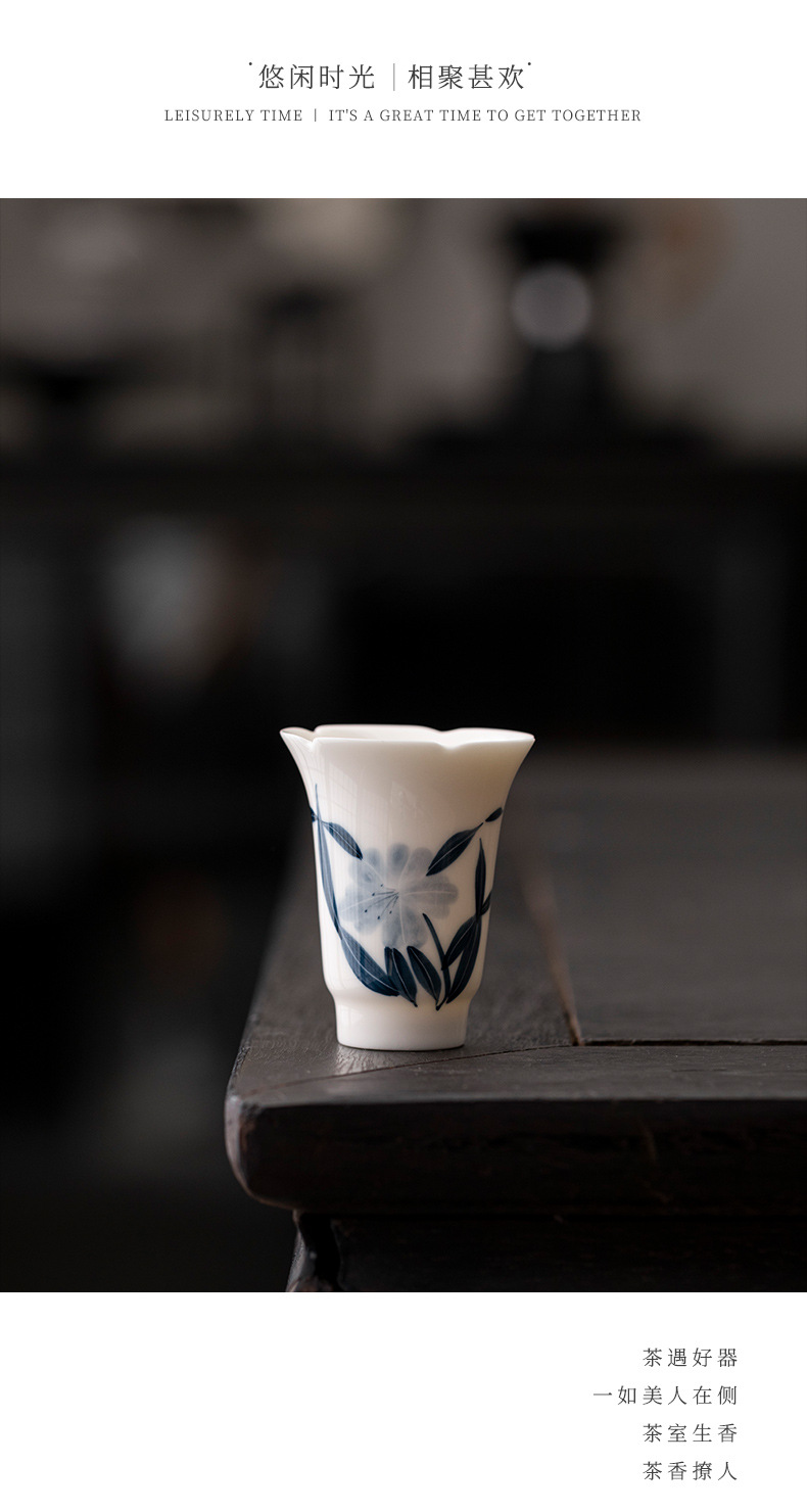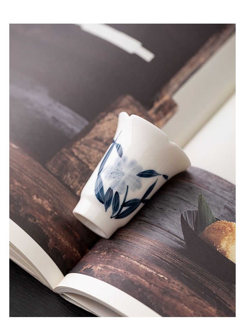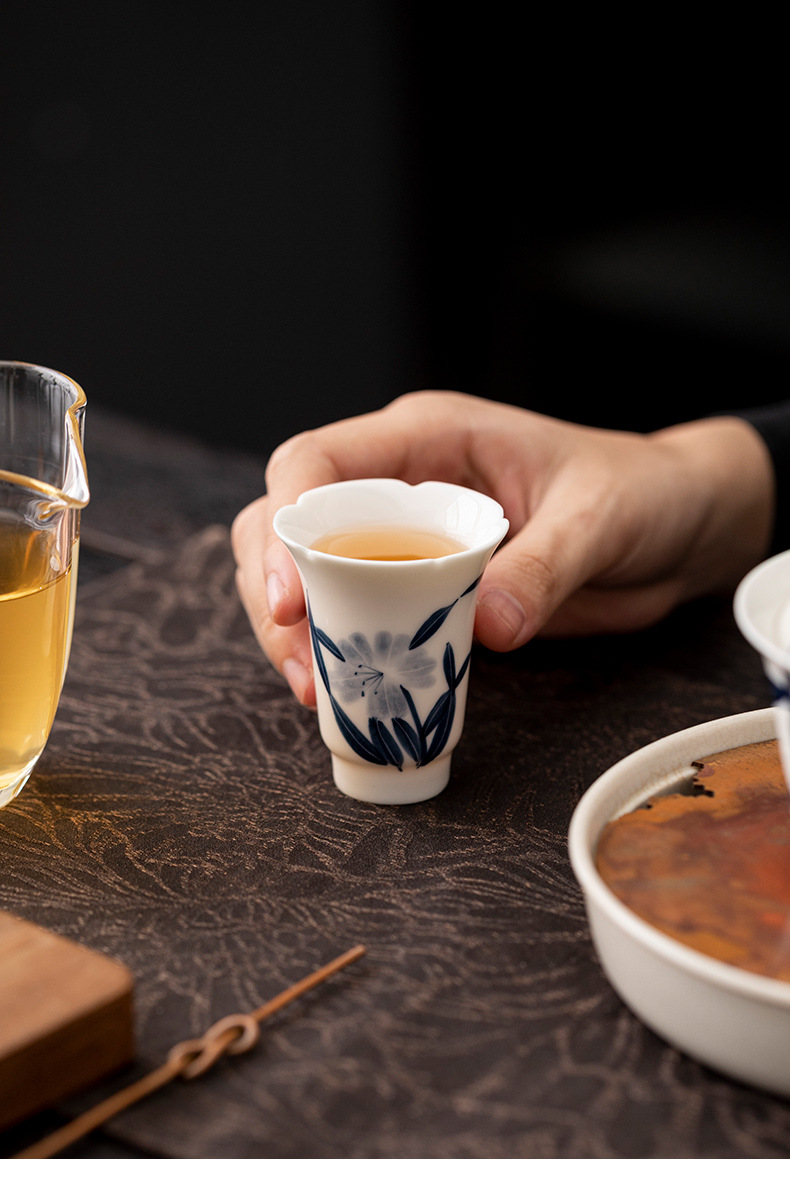 墨青百合主人杯単杯手描き白磁家庭用工夫茶トランペットプーアルカップ