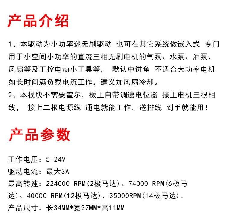 BLDC50W5-24V三相無感ブラシレスdcモータ駆動器はPWMポテンショメータ0-5V速度調整に対応しています。