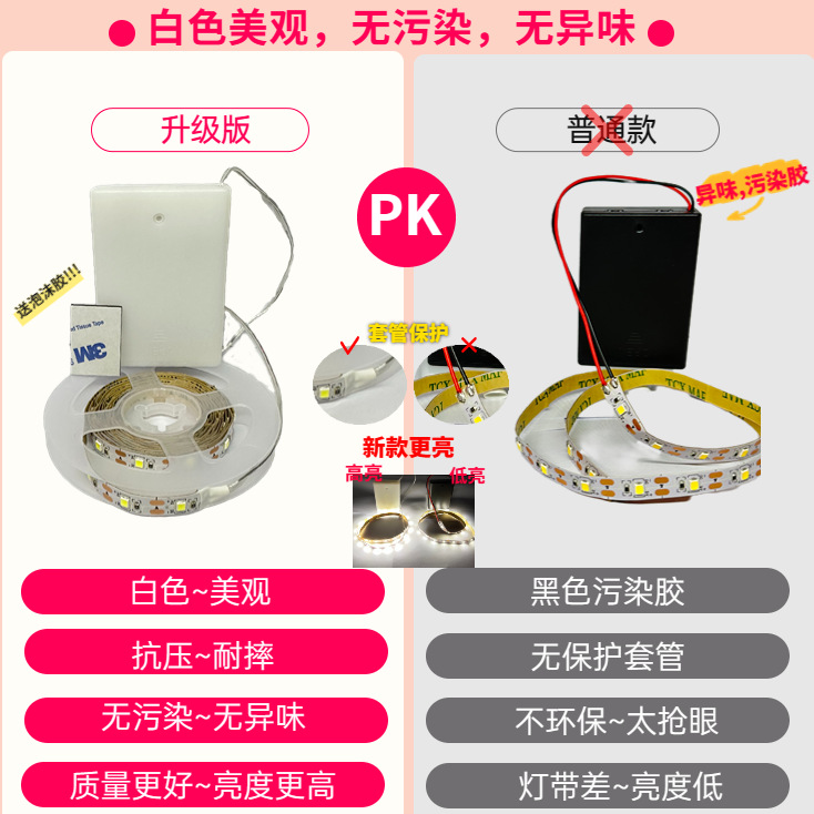 バッテリーボックスライトストリップ No.5 単三電池無電プラグインライト LED フレキシブルライトストリップ 5V 自己粘着露店テレビ雰囲気ライト
