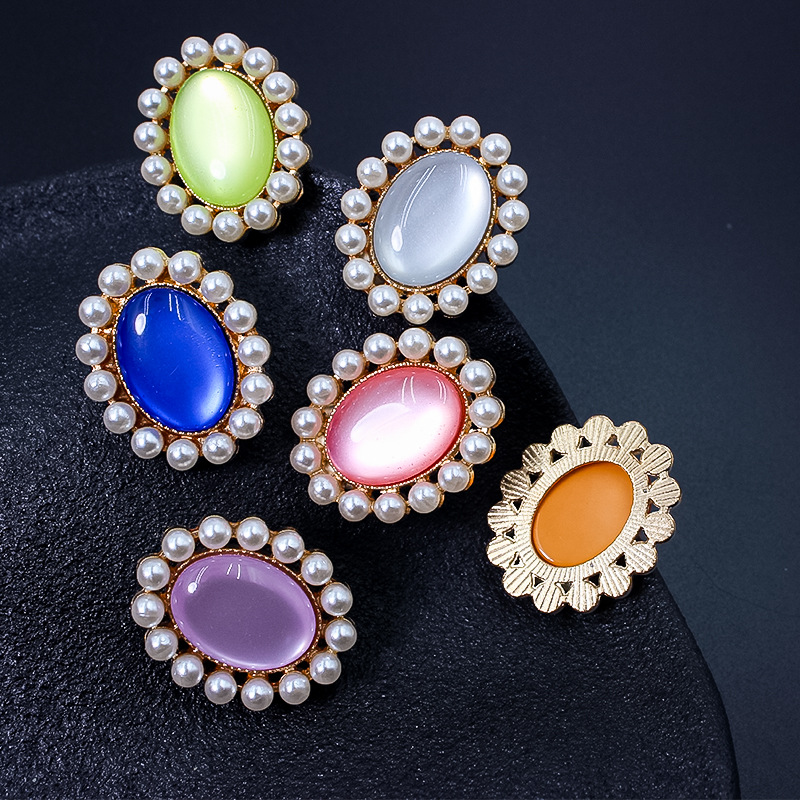 合金の単輪真珠は猫の目の楕円の花盤のドリルのボタンの部品のdiyの手をまねて服装の部品の材料を作ります。