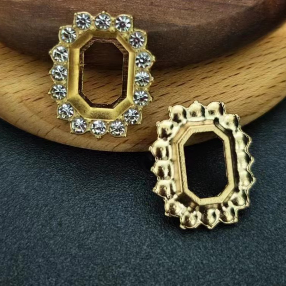 23*18MM长方形水钻配件金色花盘水钻饰品配饰花盘钻扣DIY配件材料