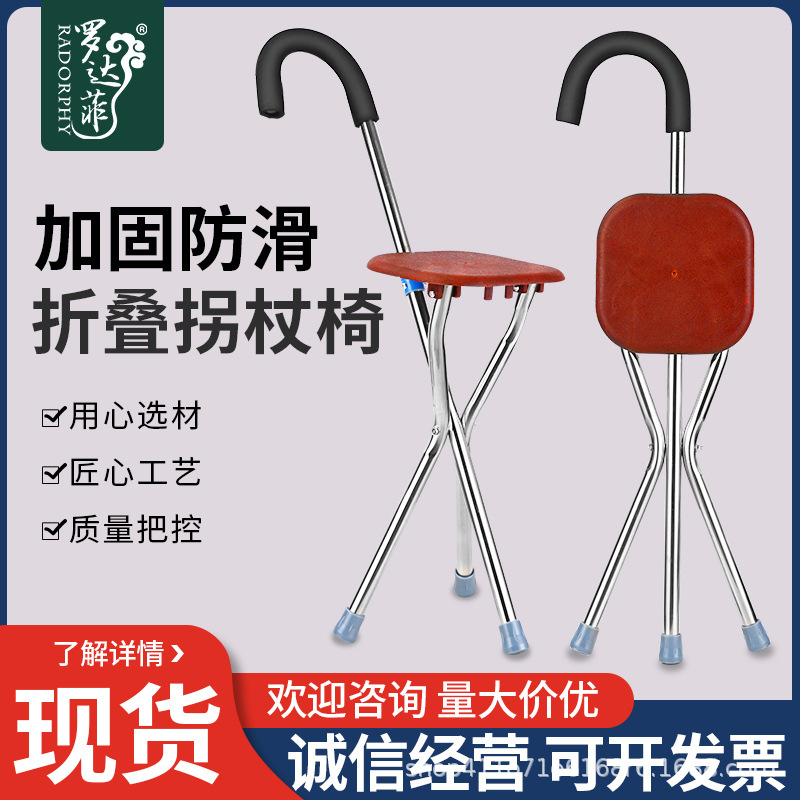 卸売りの滑り止めの高齢者は三脚の杖の腰掛けを折り畳みます。