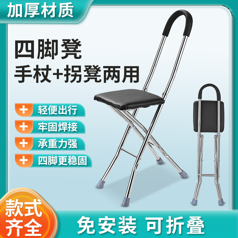 メーカー直販のステンレス製の手のベンチの手の椅子の四つの足の手の椅子の杖の老年の手の杖は折り畳みの手の椅子ができます。