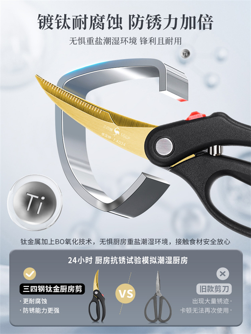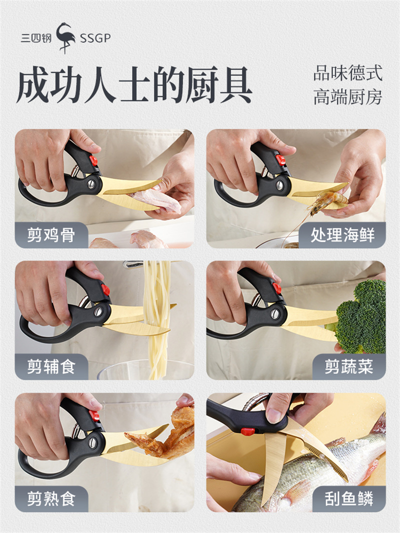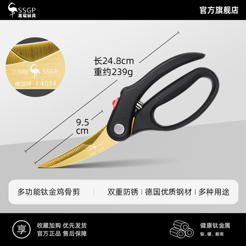 Ssgpキッチンハサミサプリメント調理済み食品焼肉はさみ鶏骨切り家庭用強力チタンメッキ多機能はさみ