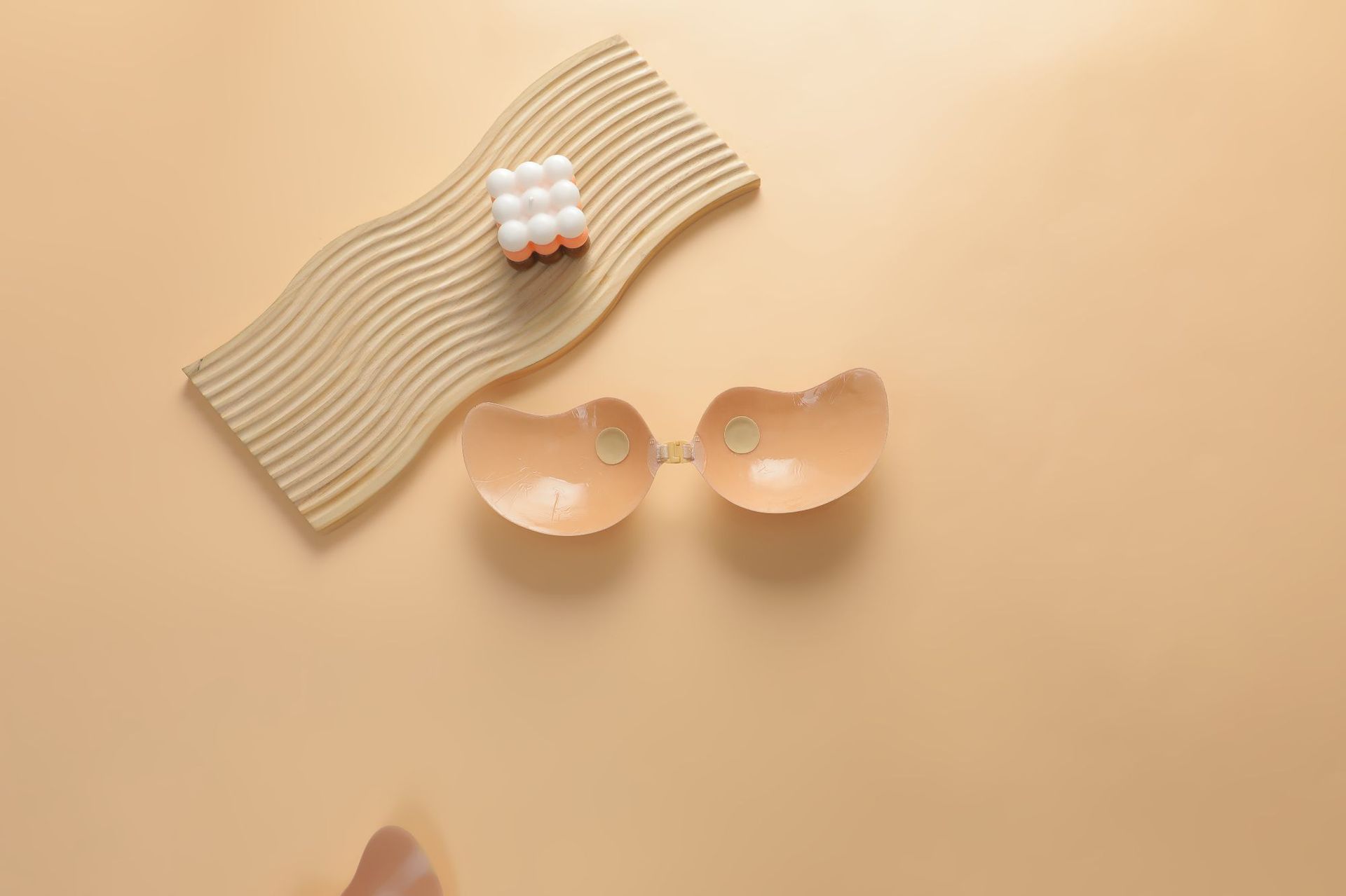 メーカー供給の粘着式インビジブル胸パッド、バイオシリコン製下着胸パッド、超厚スポンジパッド、胸パッド付き