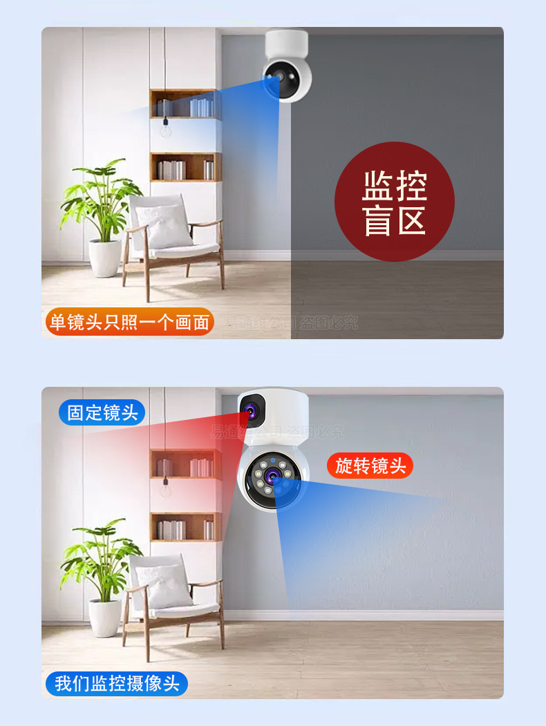 V380デュアル画面ワイヤレスwifiモニター360度屋内家庭用携帯電話リモートフルカラーカメラ