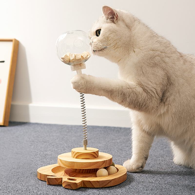 木造の猫のおもちゃは、猫の棒がボールを漏らして、アマゾンの爆発的な猫のターンテーブルのペットが食器を漏らした
