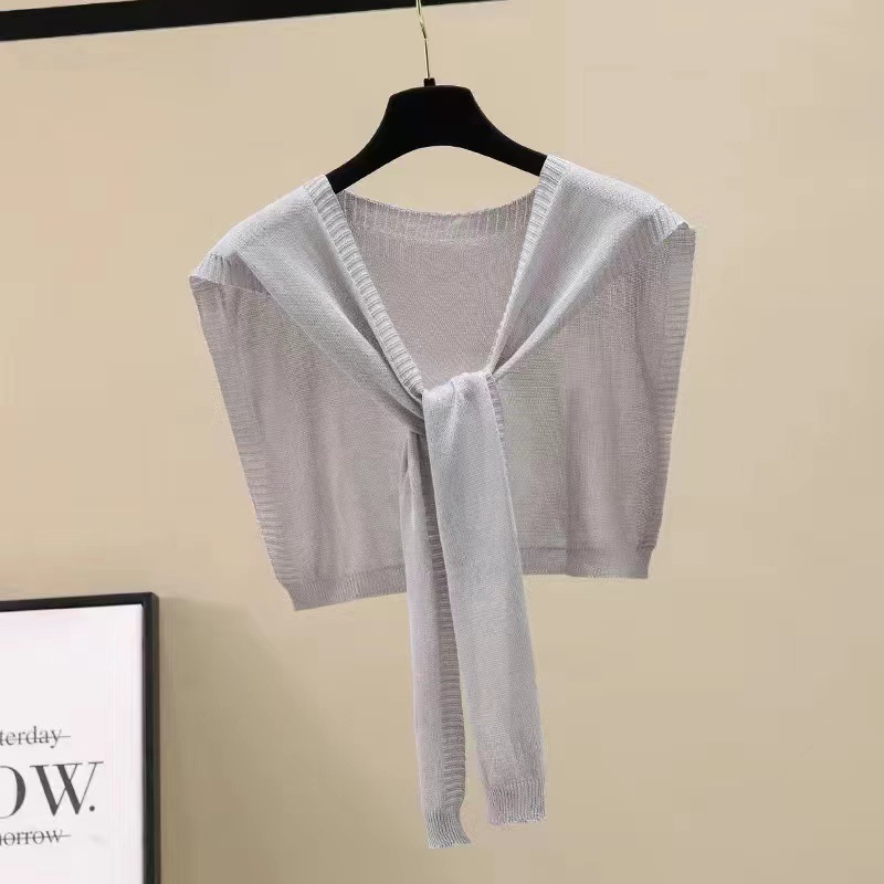 2024氷糸の薄いタイプの通気性の快適なマントのファッションは純色の日焼け止めの肩のエアコンを合わせてマントのニットを結びます。