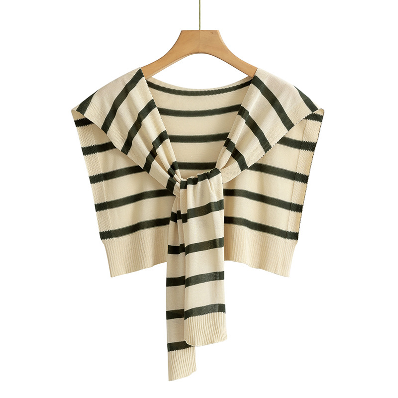 网红爆款现货时尚条纹气质百搭镂空针织披肩女毛线搭肩坎肩潮