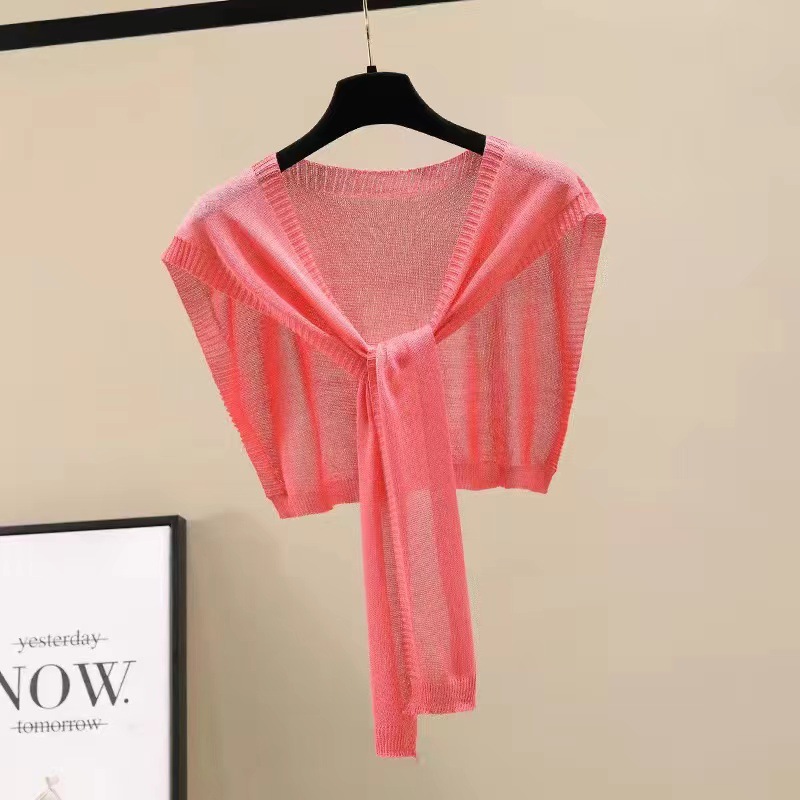 クロスボーダー夏ショール女性のニットチョッキ春と秋のエアコンルームチャイナスカーフ装飾的な小さなコートシフォン