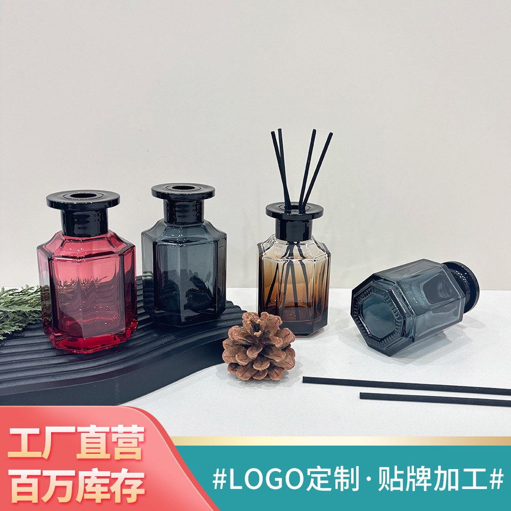 厂家新品批发120ML 六棱灰红渐变棕螺口圆柱瓶无火藤条挥发香薰瓶