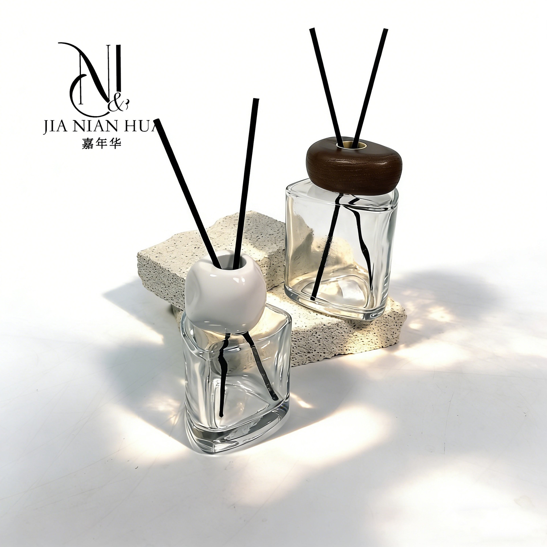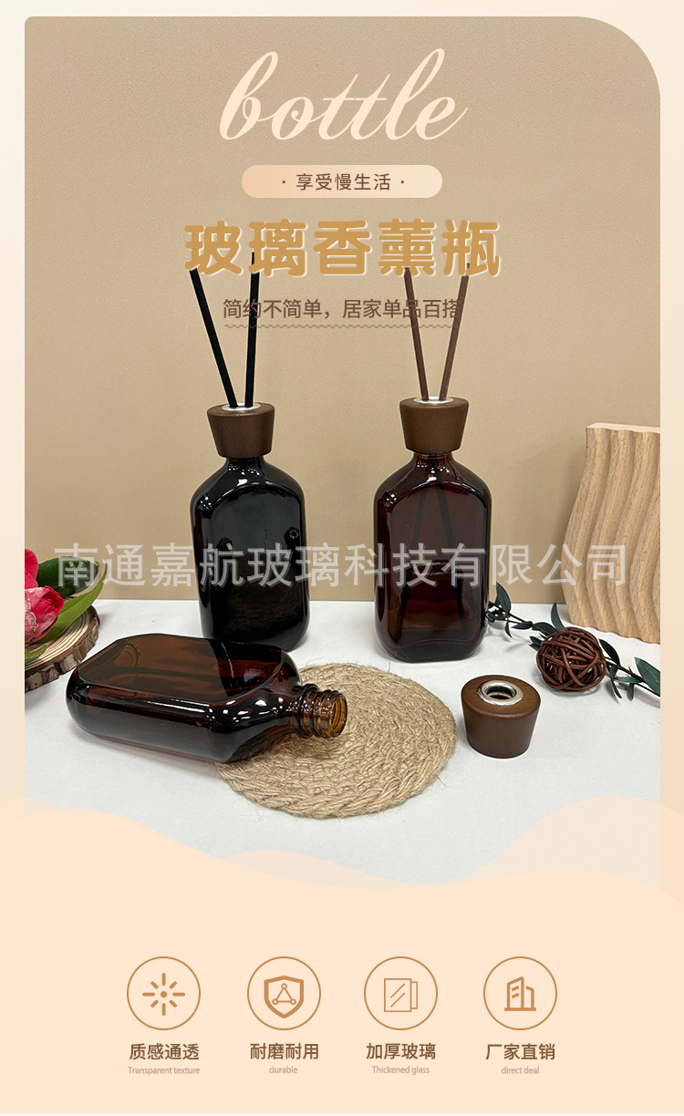 新品批发100ML车载方圆形香薰玻璃瓶 藤条挥发扩香瓶室内香氛空瓶