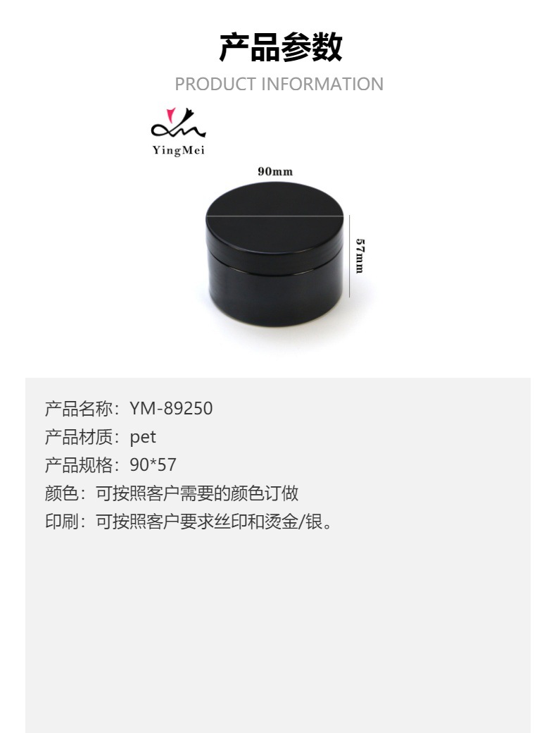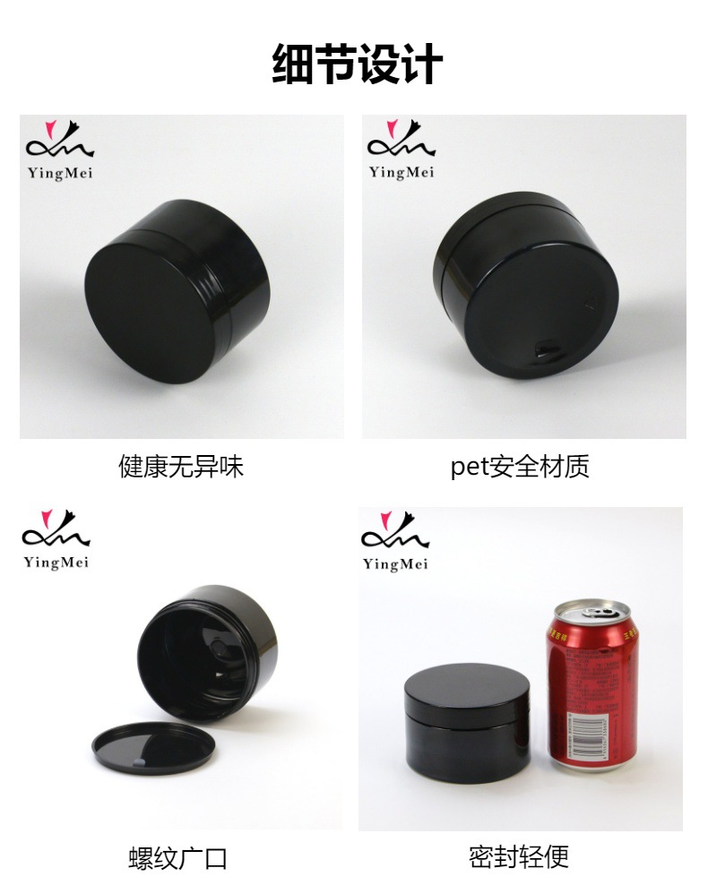 純粋な黒色高級化粧品瓶缶クリーム散粉ハンドクリーム包装瓶広口円形petペットボトル
