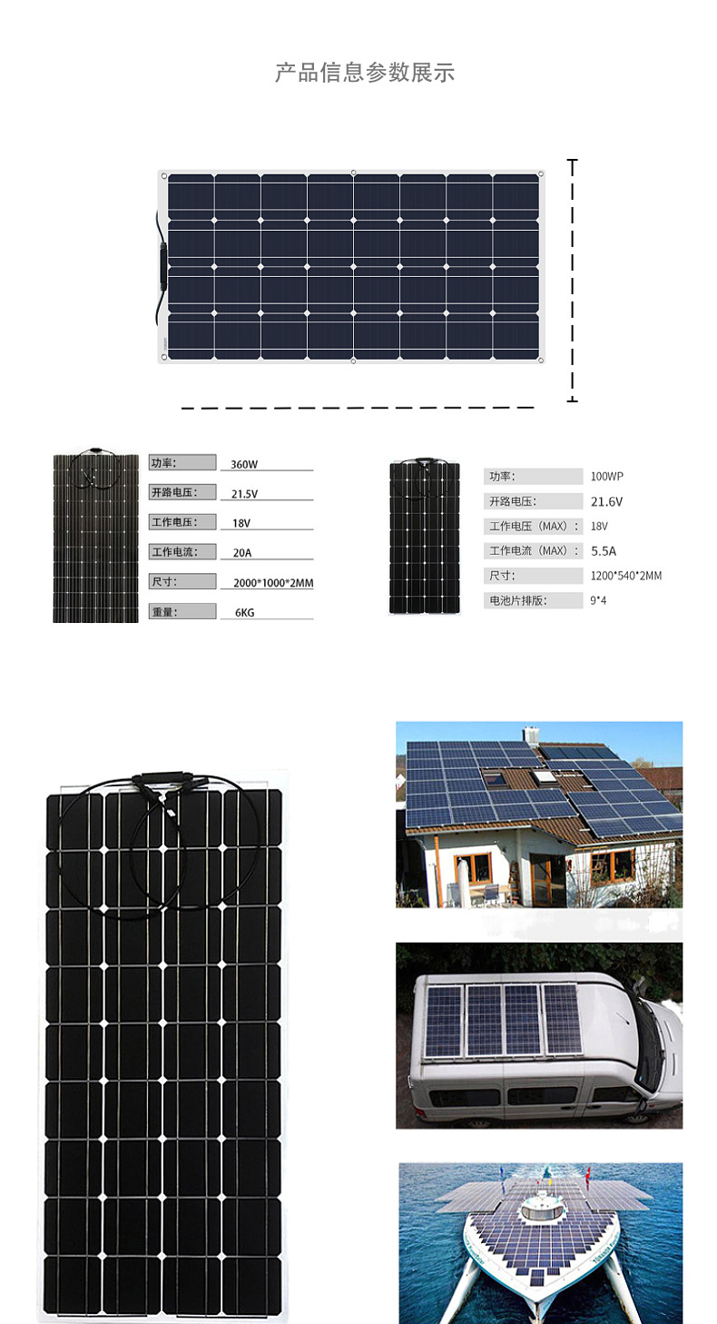 ソーラーパネル50w100w200w400wソーラー単結晶フレキソ板セミフレキソ板メーカー直送