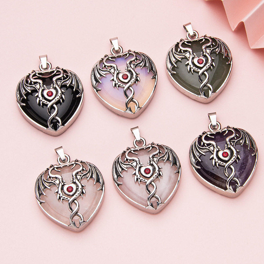 天然石水晶レトロ双翼龍包宝石愛ペンダントネックレスdiy宝石アクセサリーネックレス