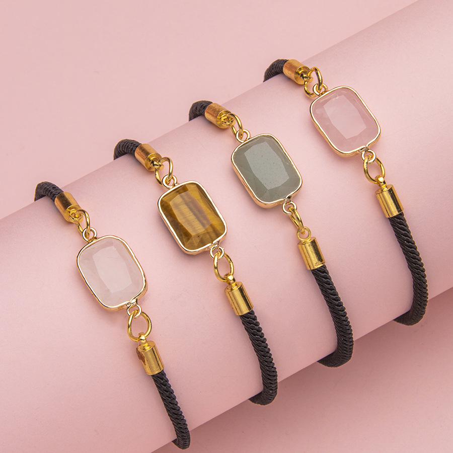 創意ファッション天然石水晶切断面長方形の手の列の方の牌の手の串の半宝石の瑪瑙のブレスレットの手の串