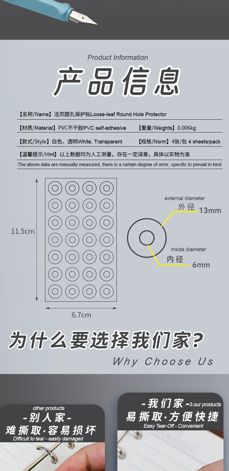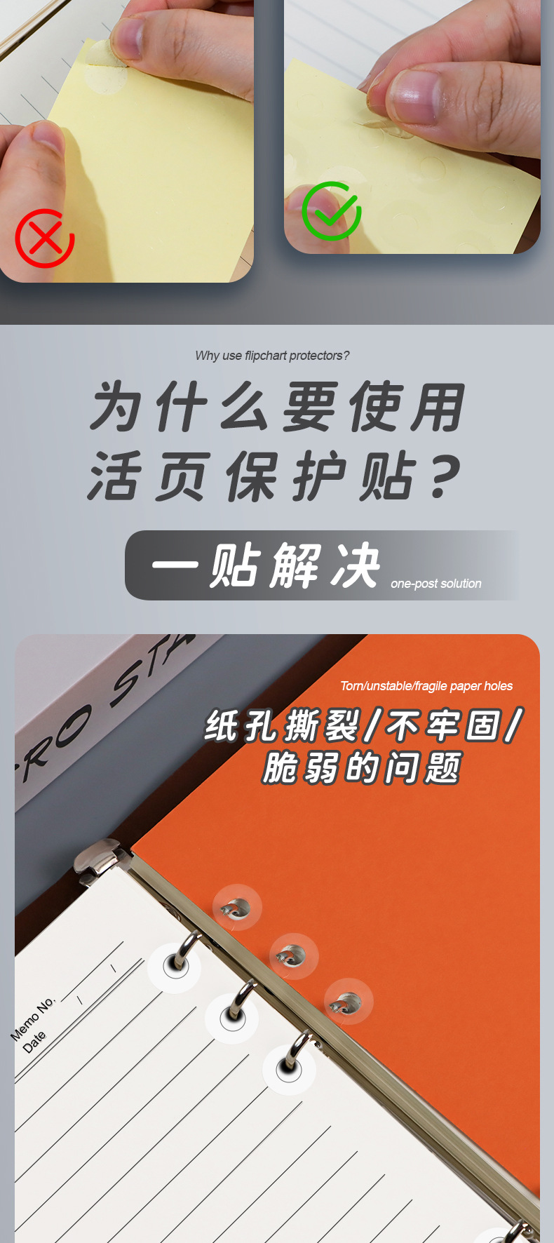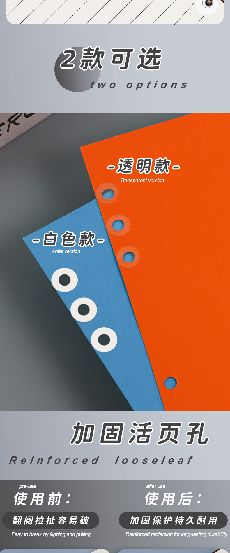 ルーズリーフ穴保護ステッカー ルーズリーフブック補修 強化保護ステッカー 鶏目サークルファイル ジャン・ウーフン