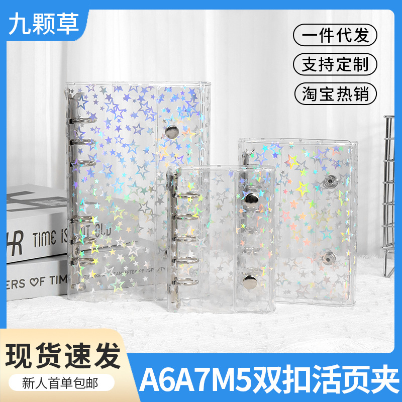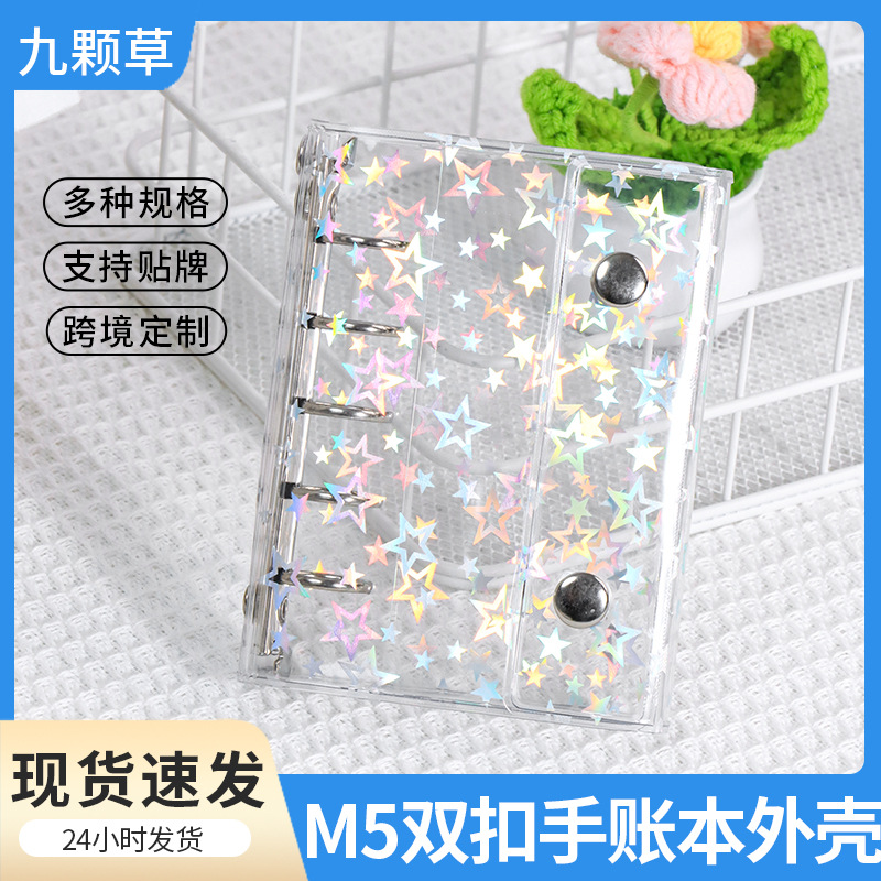 インスタイル透明レーザースター pvc バインダー A6A7M5 ノートブック手帳ダブルバックル交換可能なシェル