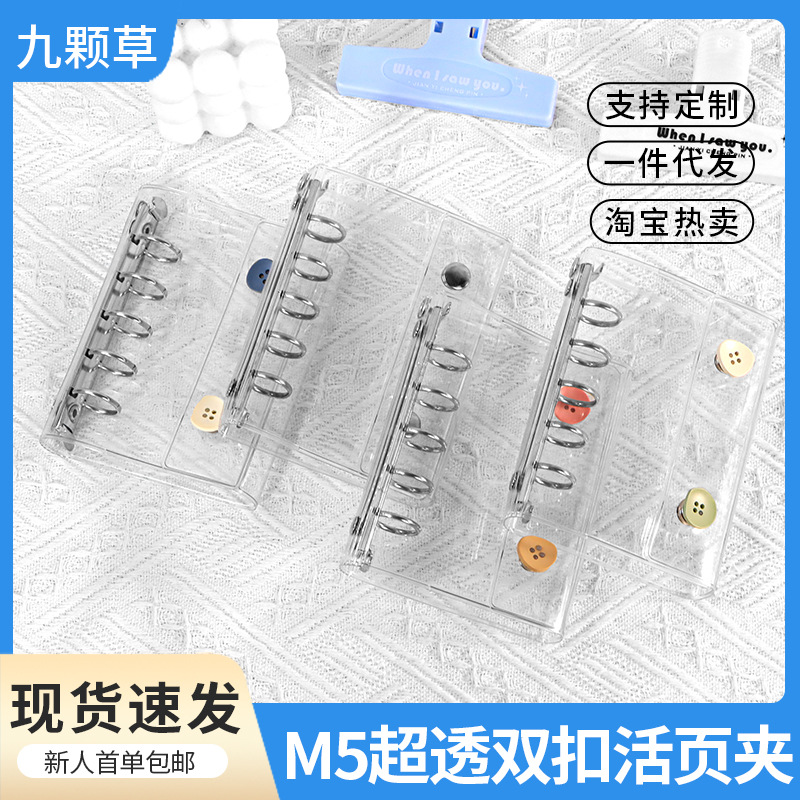 携帯m 5バインダー手帳pvc透明ダブルボタンバインダーカバーa 8バインダーノート金属5穴カード